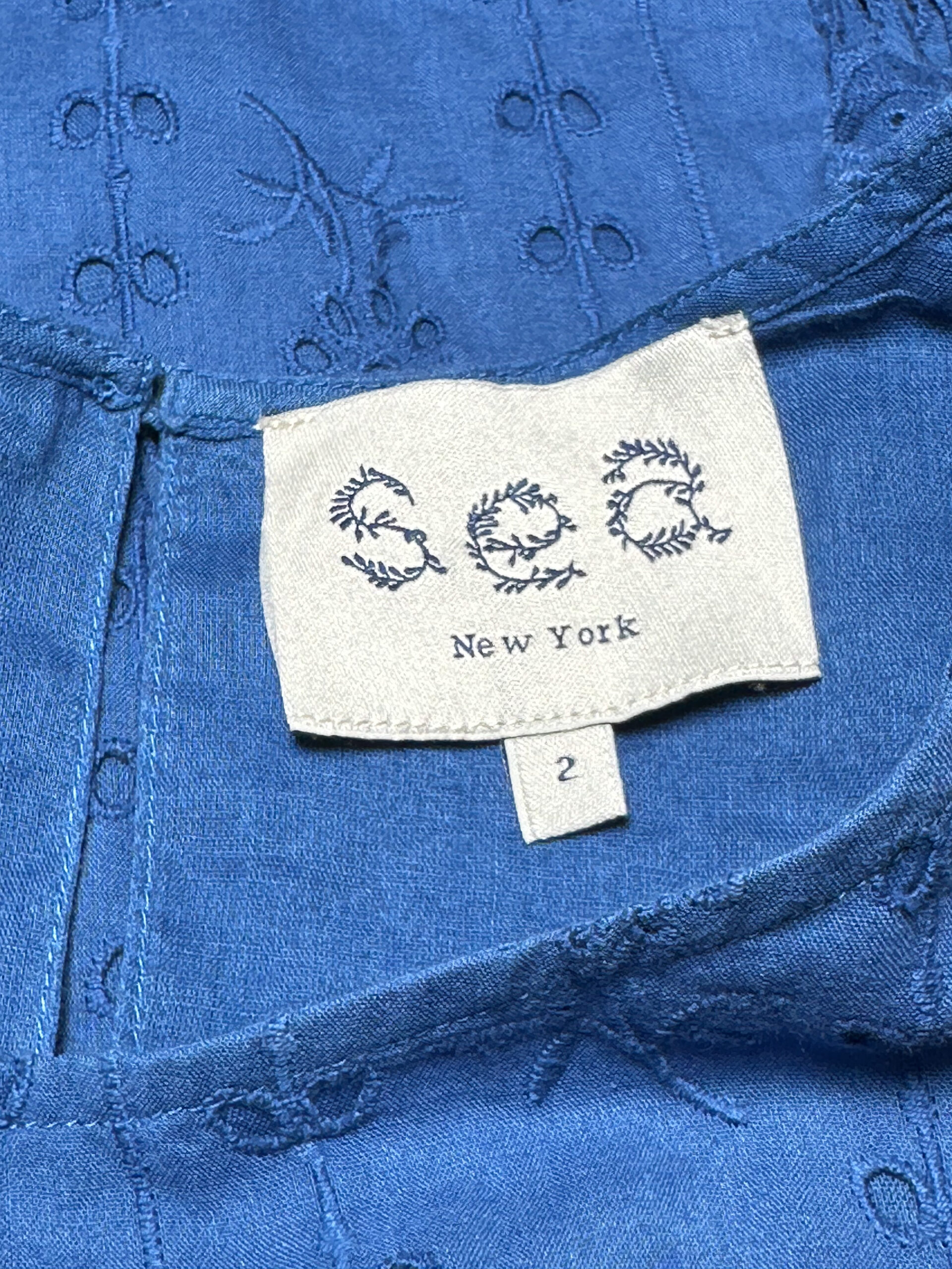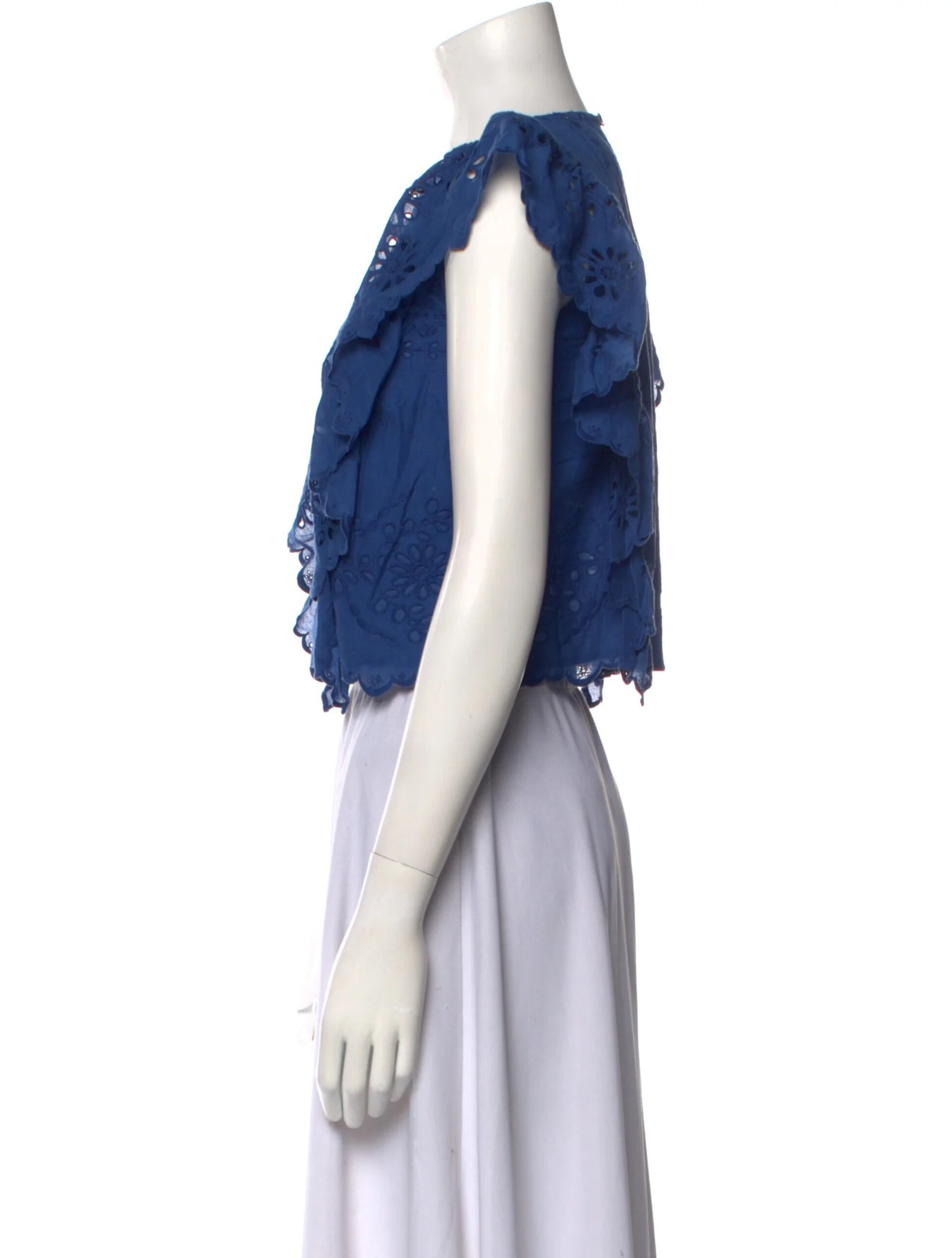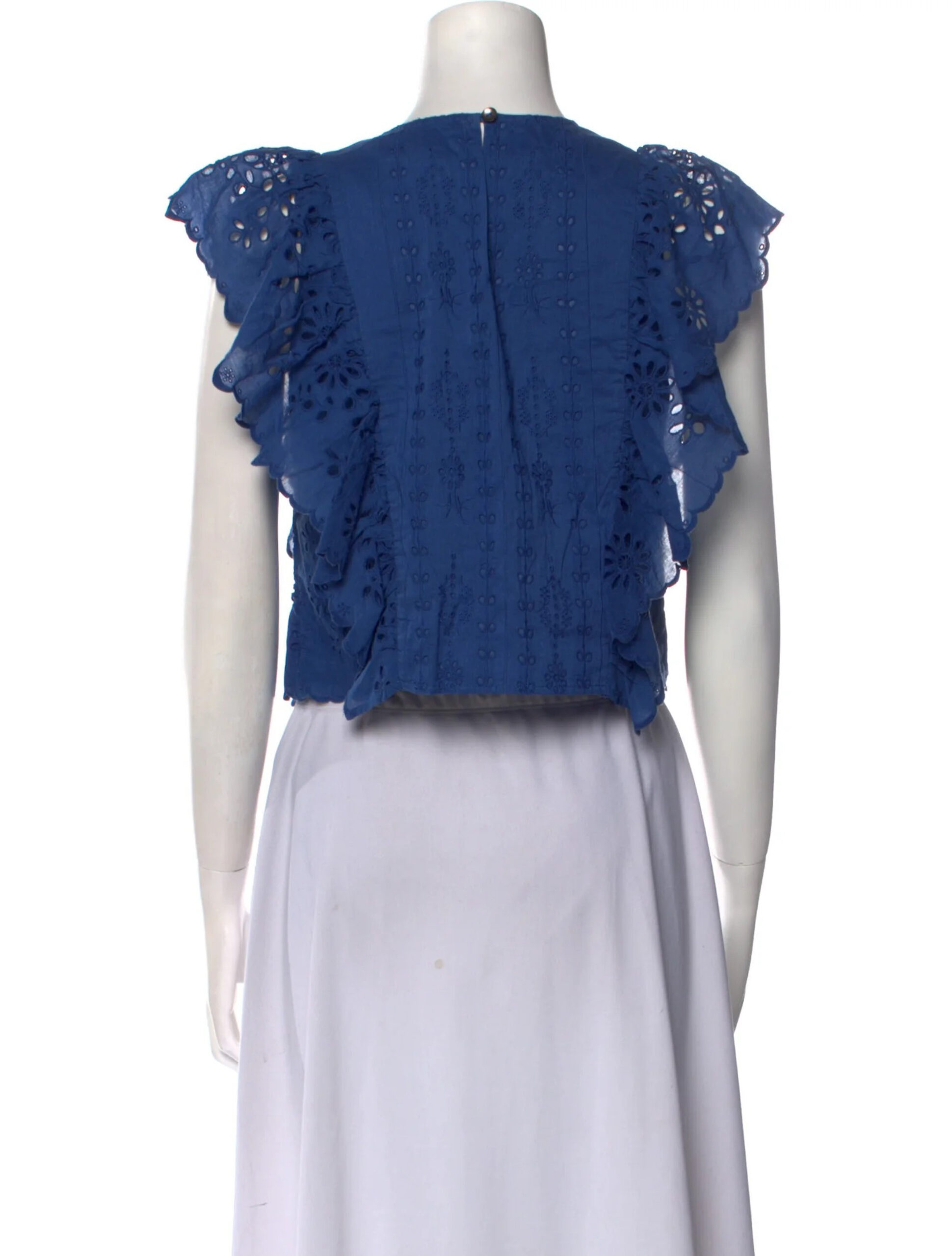 - Style: BLUE EYELET COTTON RUFFLE FRILL TOP BLOUSE