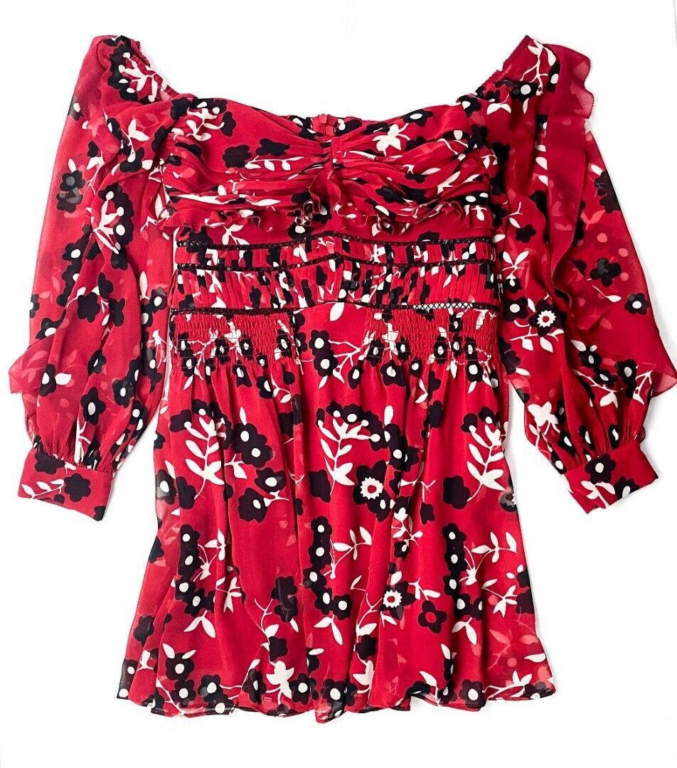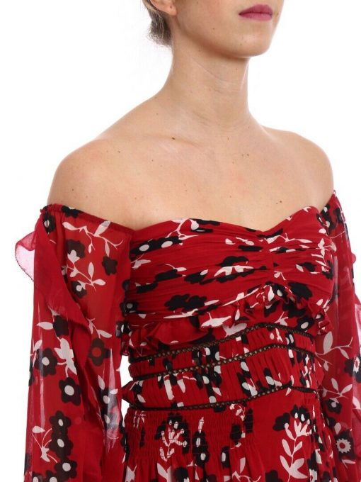 - Style: RED FLORAL GEORGETTE OFF SHOULDER MINI DRESS