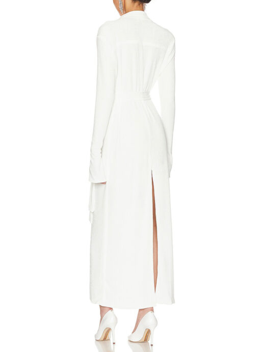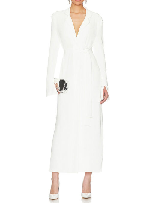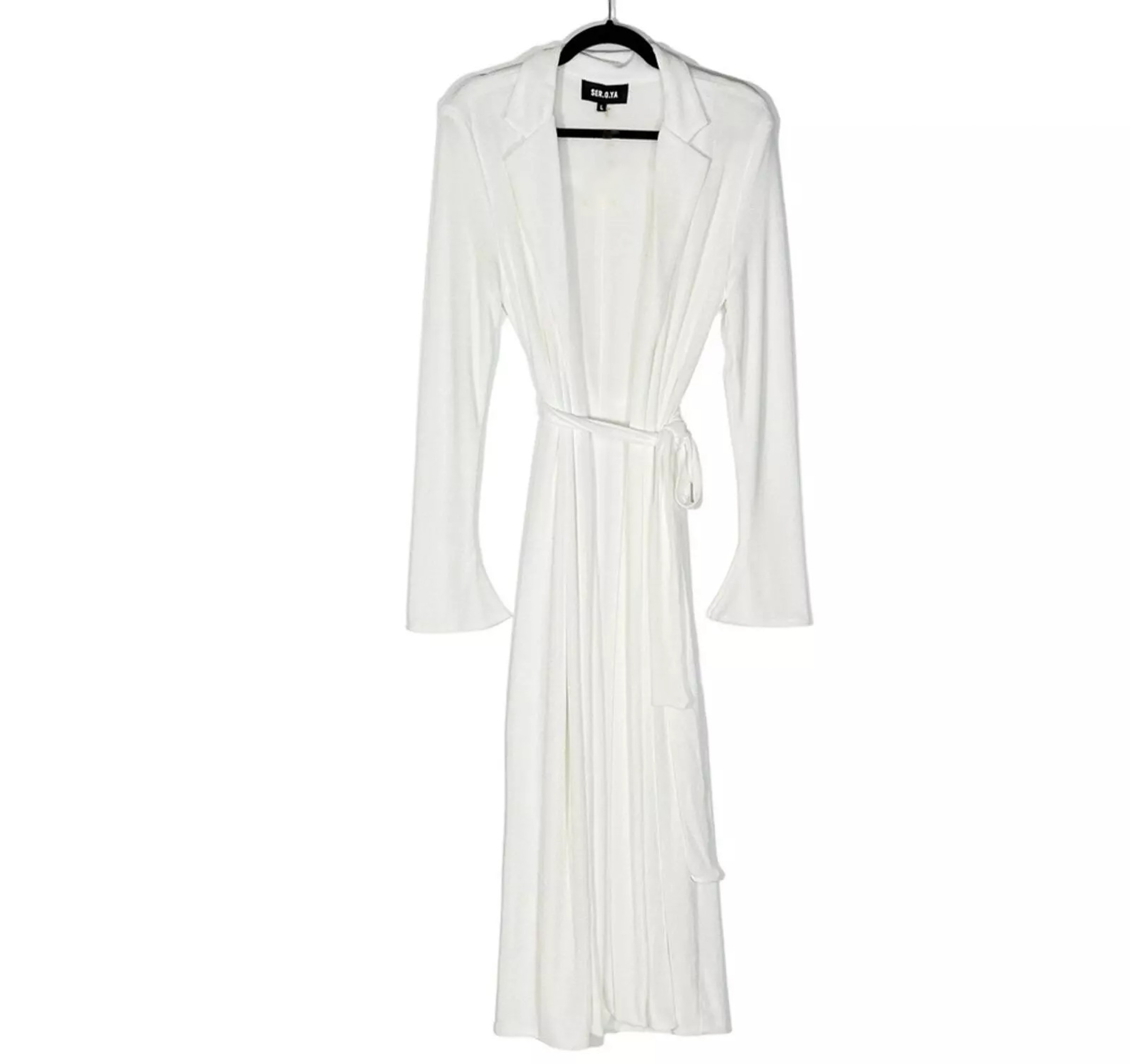 SER.O.YA Virginia V-Neck Belted Knit Cardigan Duster Maxi Dress XS White
