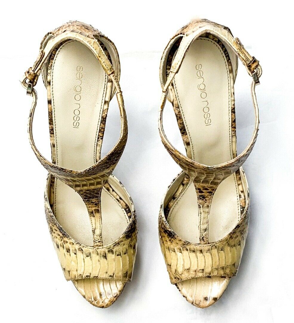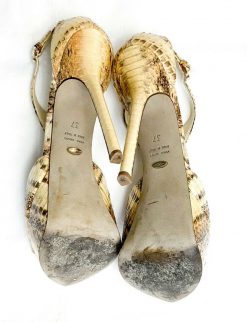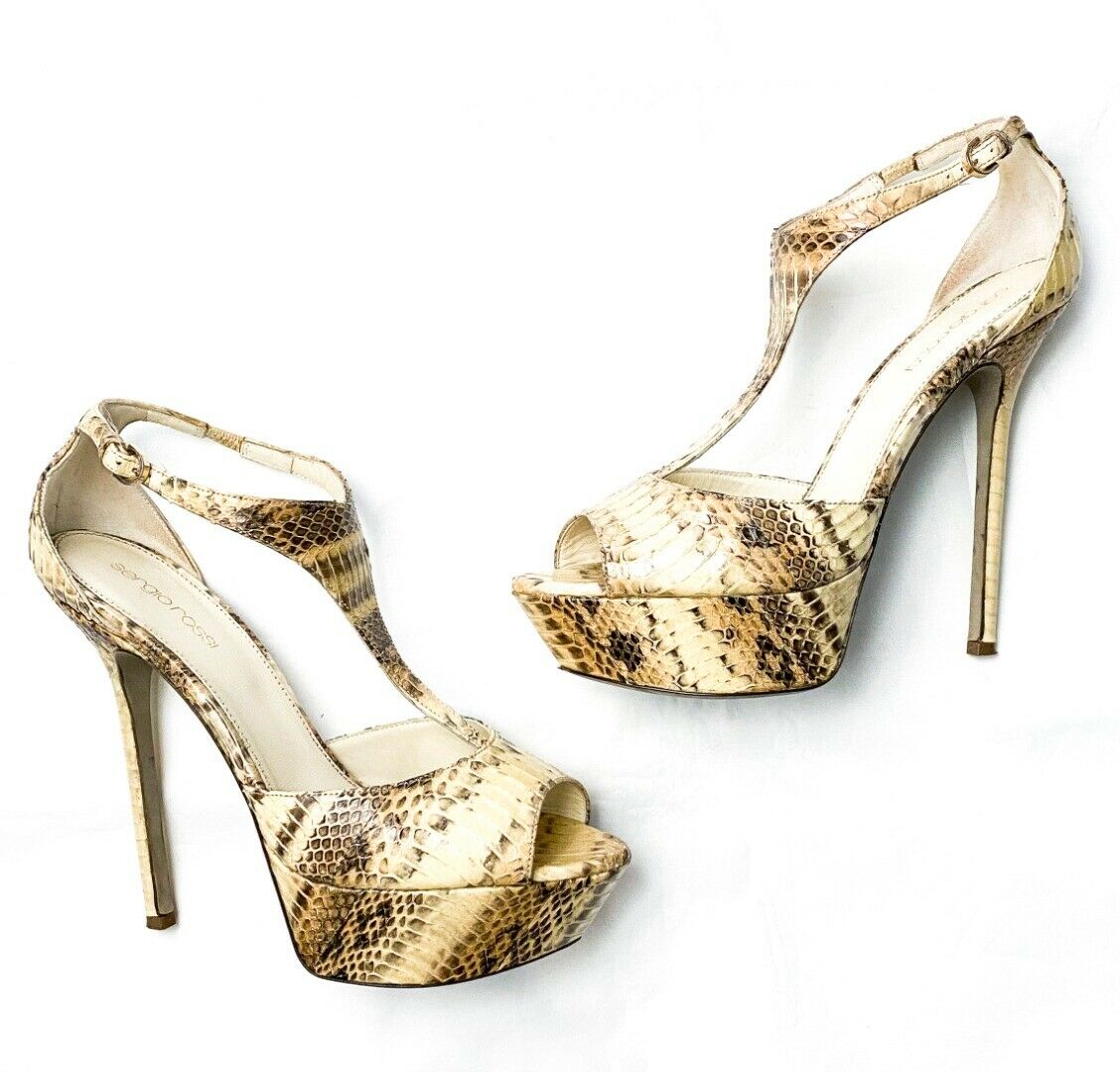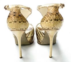 - Style: BEIGE PYTHON SNAKESKIN PLATFORM T-STRAP SANDALS