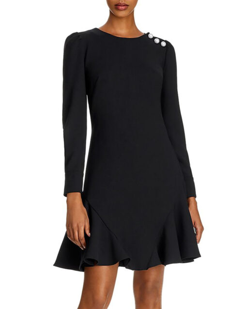 Shoshanna NWT Dara Black Pearl Long Sleeve Mini Flare Dress 8 NEW TAGS