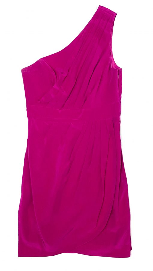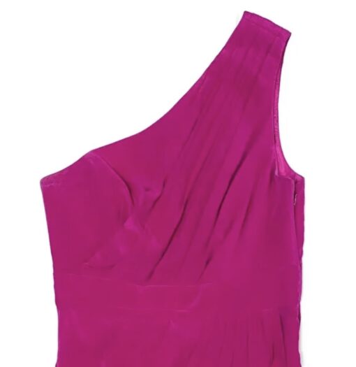 - Style: Pink Pleated Silk One Shoulder Mini Dress