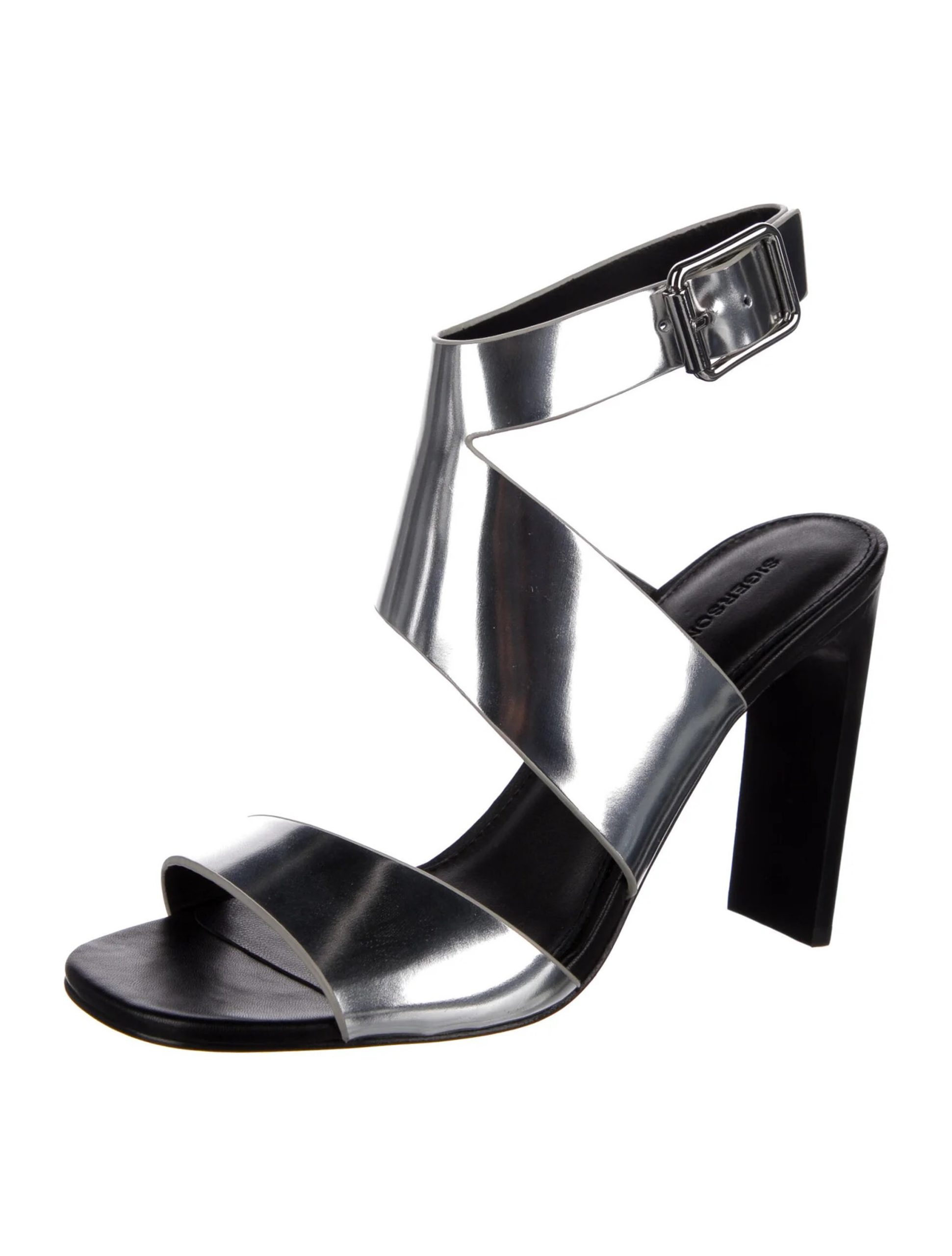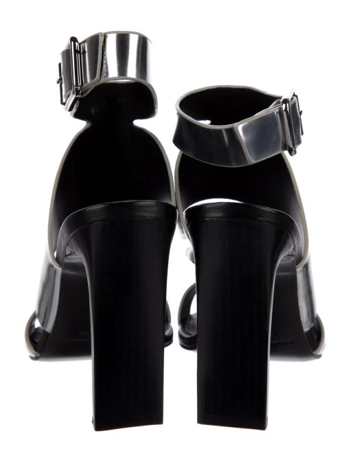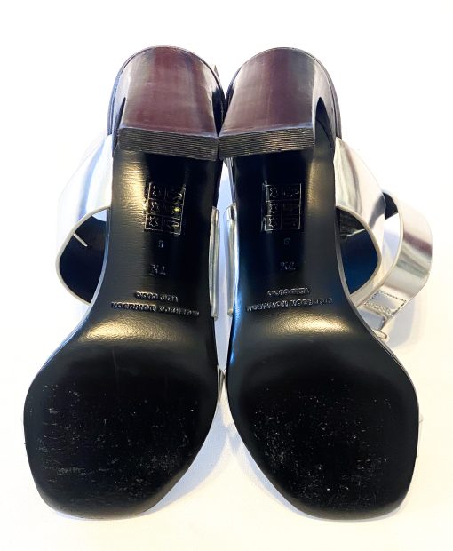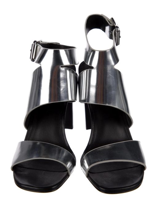 - Style: SILVER METALLIC LEATHER ANKLE CUFF SANDALS