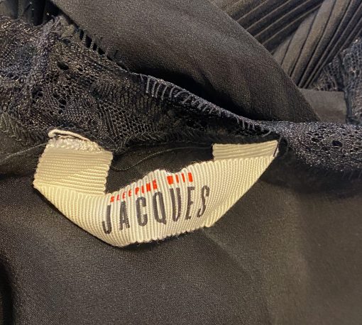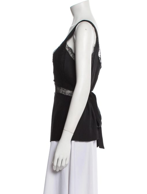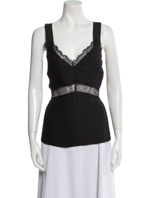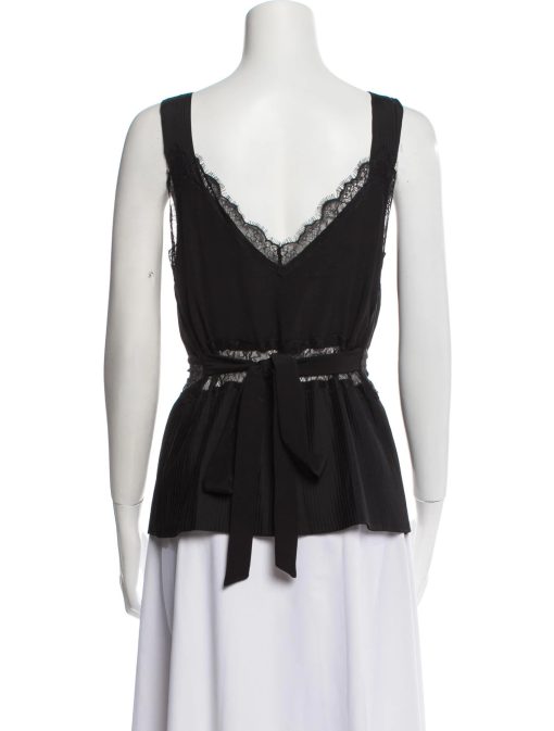 - Style: BLACK PLEATED SILK LACE TRIM TOP BLOUSE