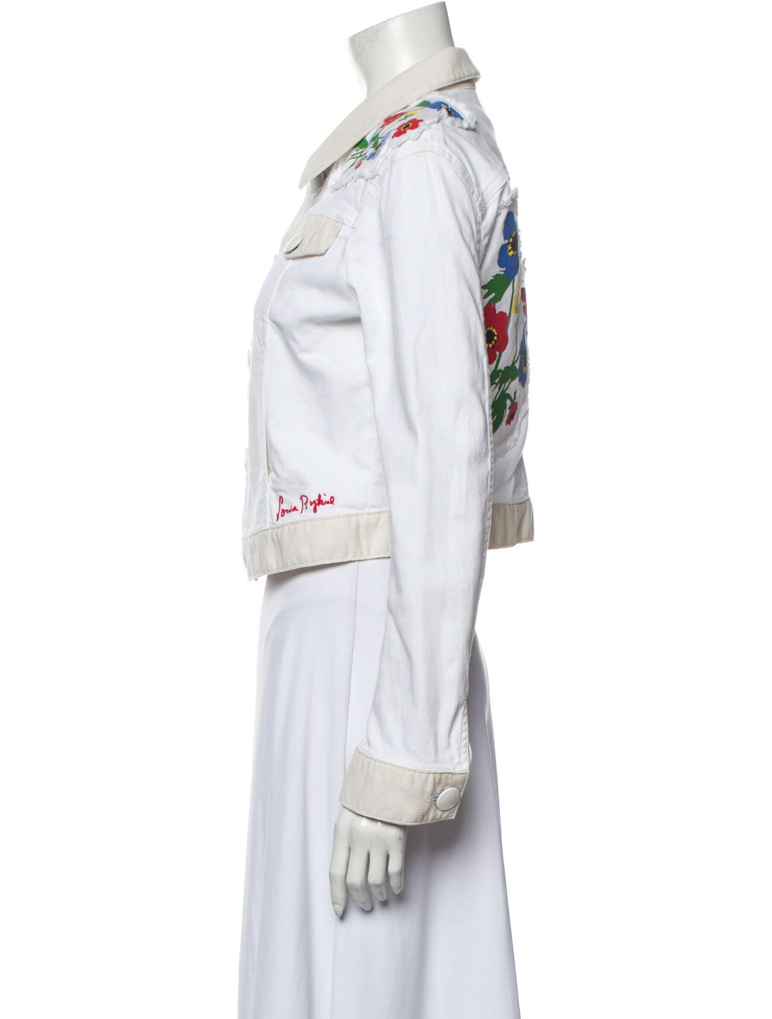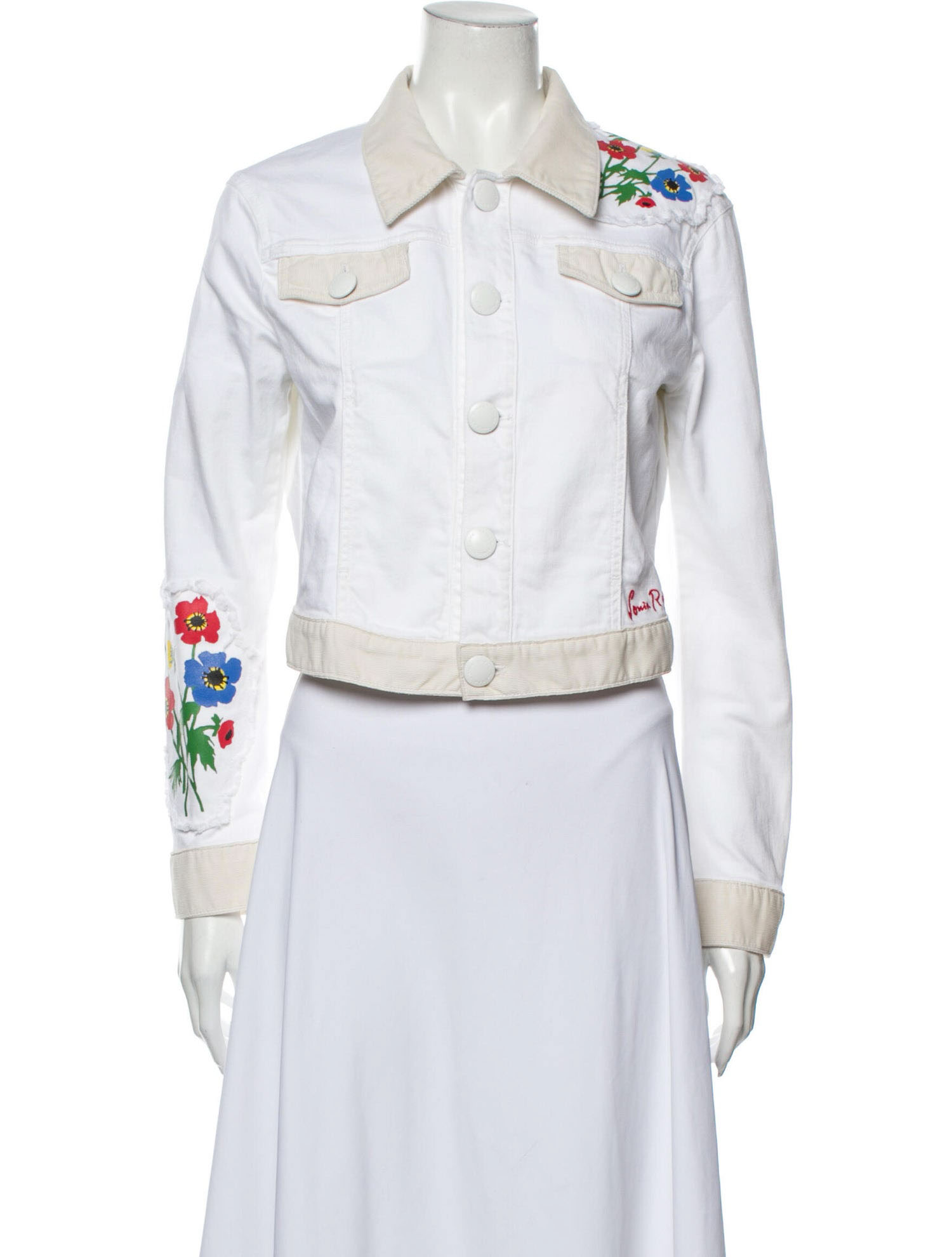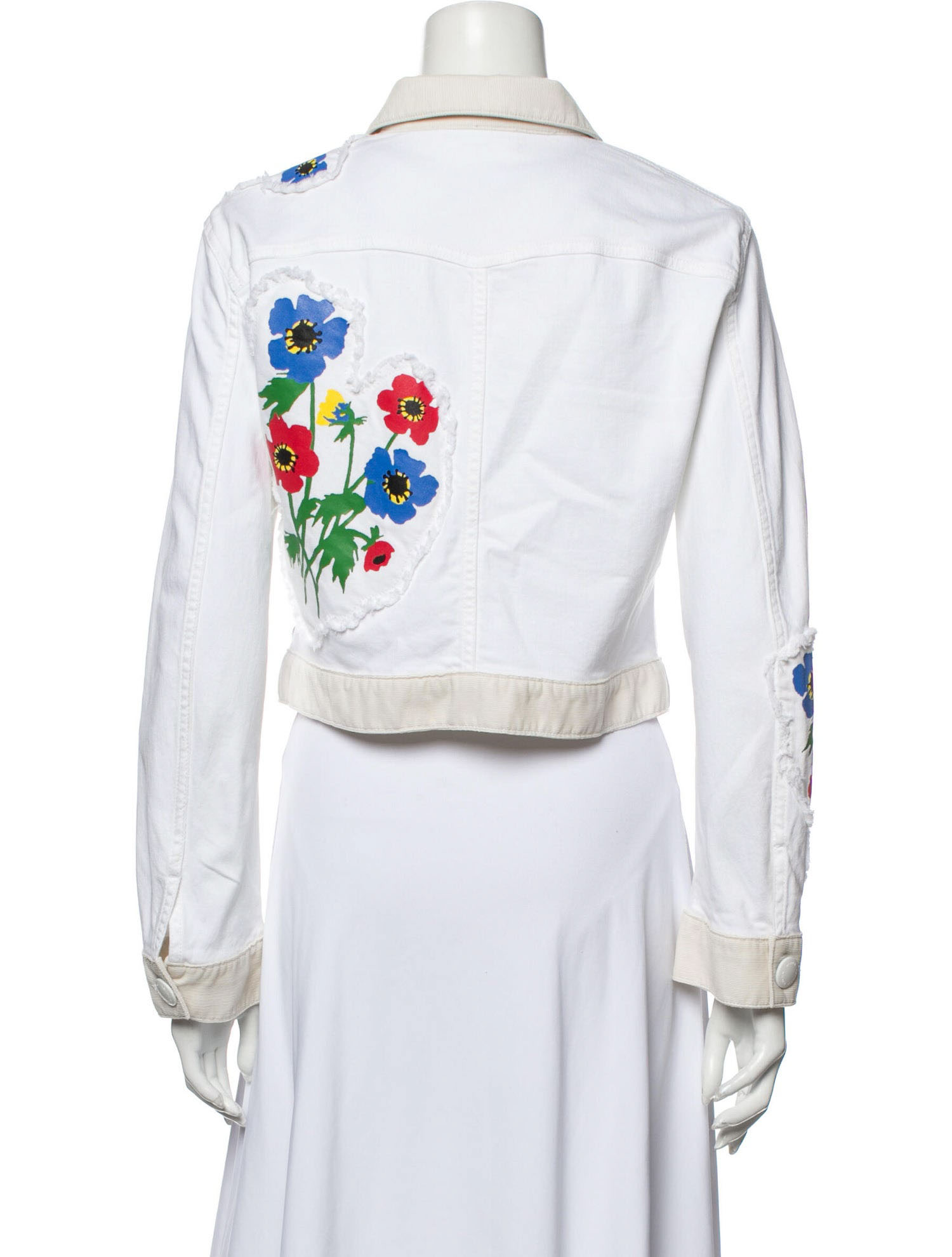 - Style: WHITE DENIM FLORAL PATCHWORK JEAN JACKET