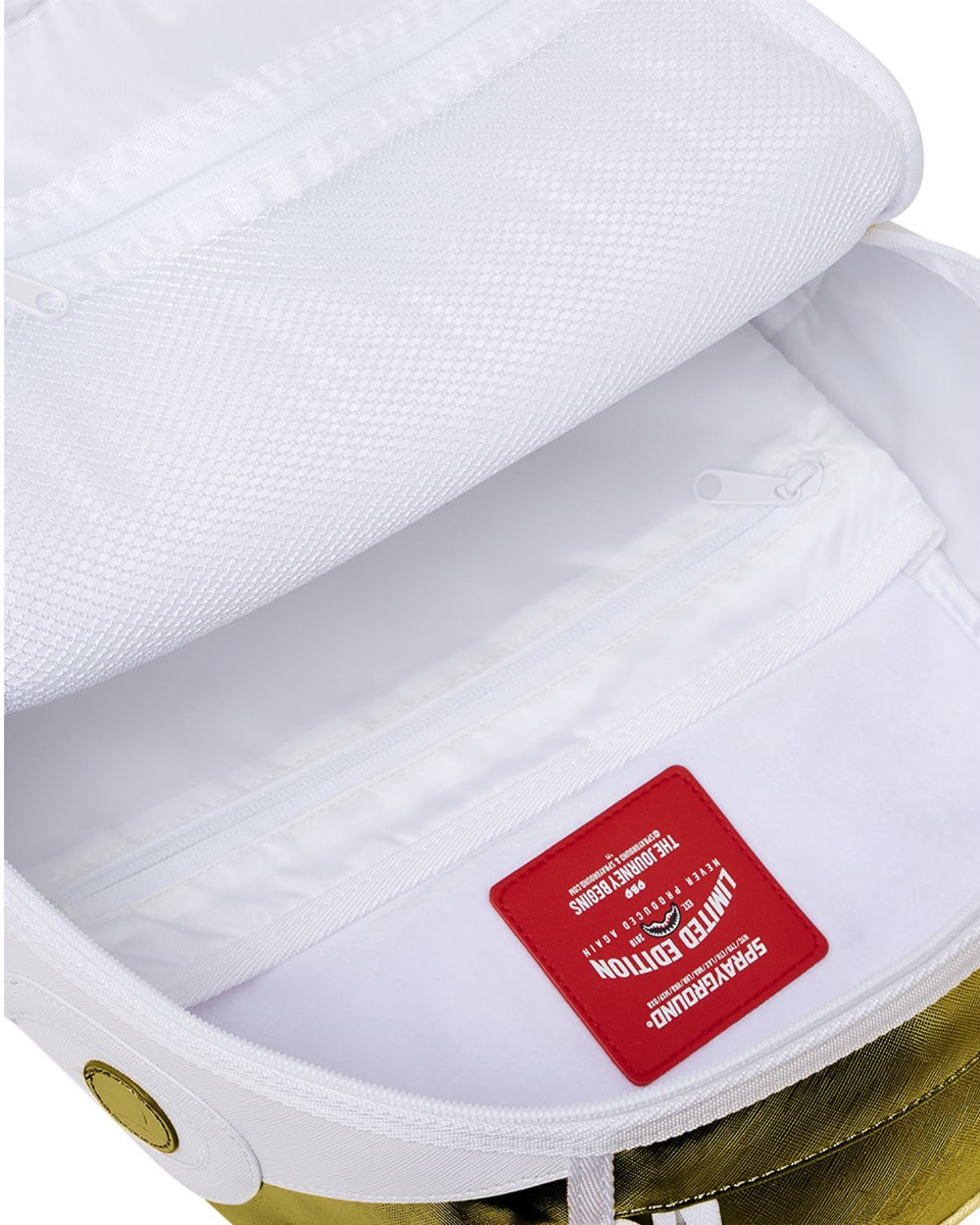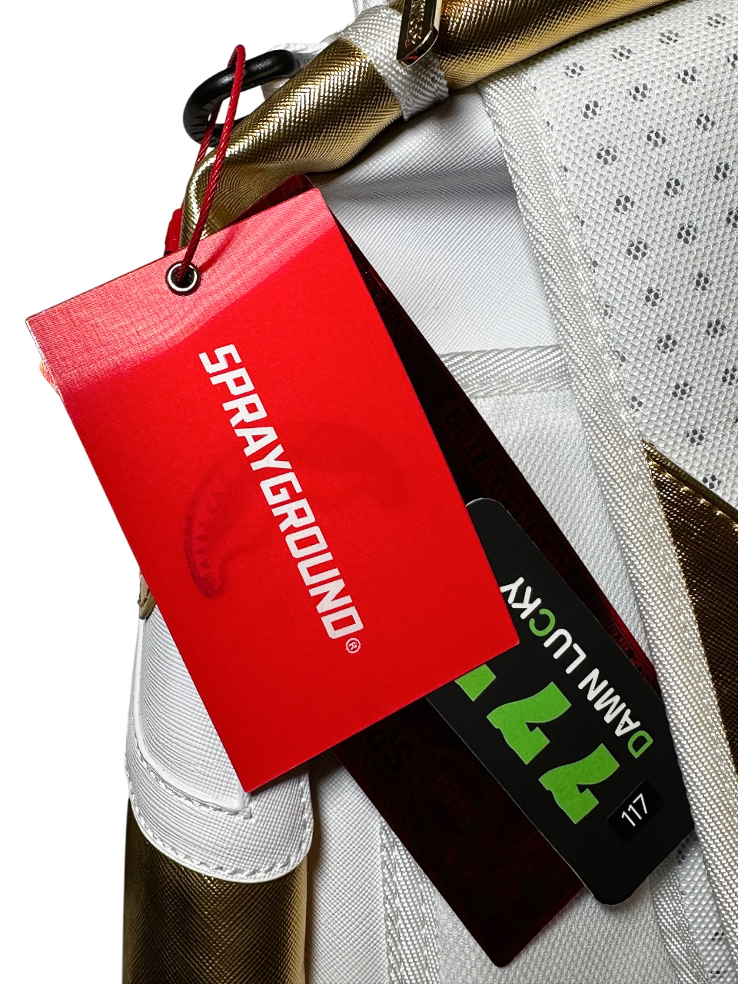 Sprayground NWT White Gold Couture Shark DLXSV Backpack Bag NEW