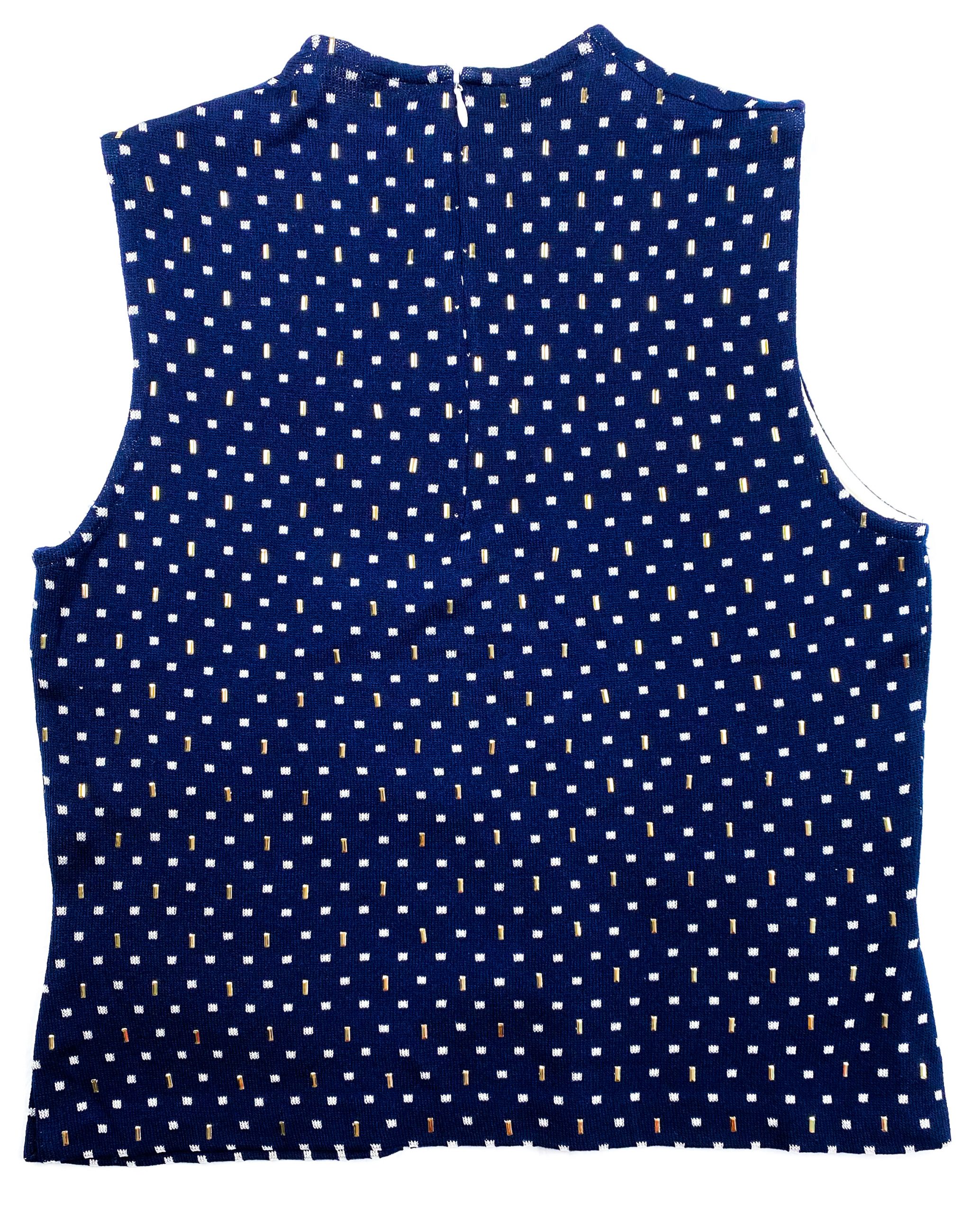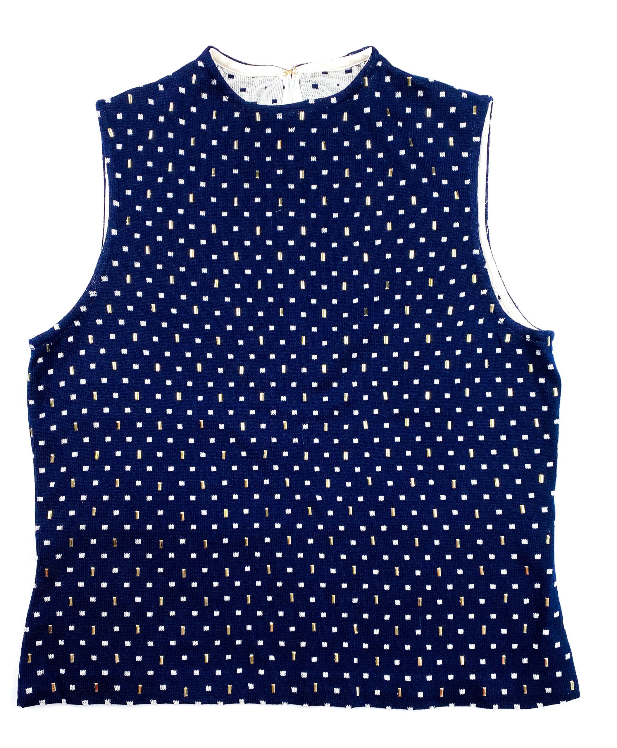 - Style: NAVY EMBELLISHED CREW NECK SLEEVELESS BLOUSE TOP