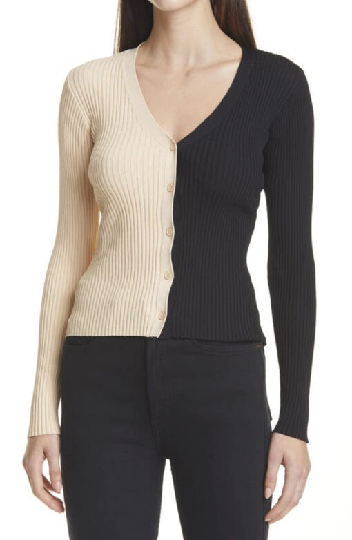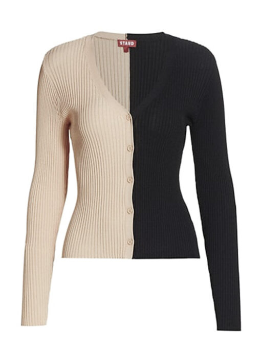 Staud Cargo Colorblock Ribbed Knit V-Neck Long Sleeve Cardigan Sweater Small