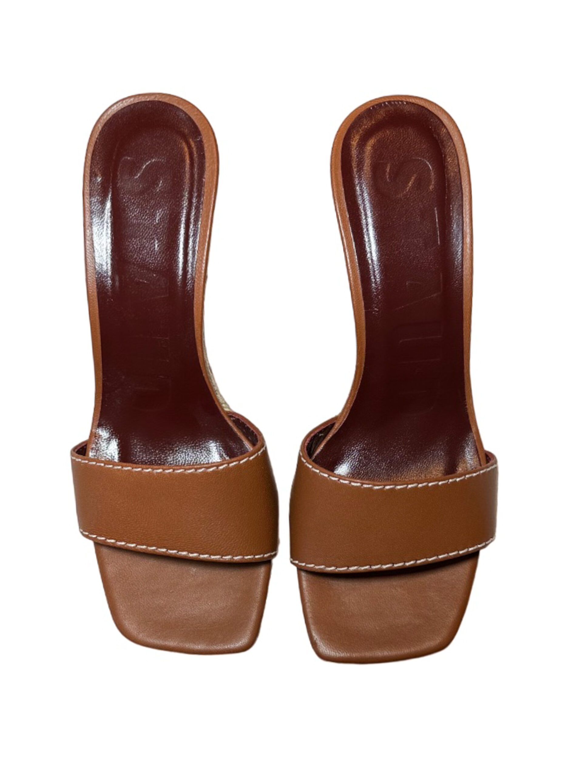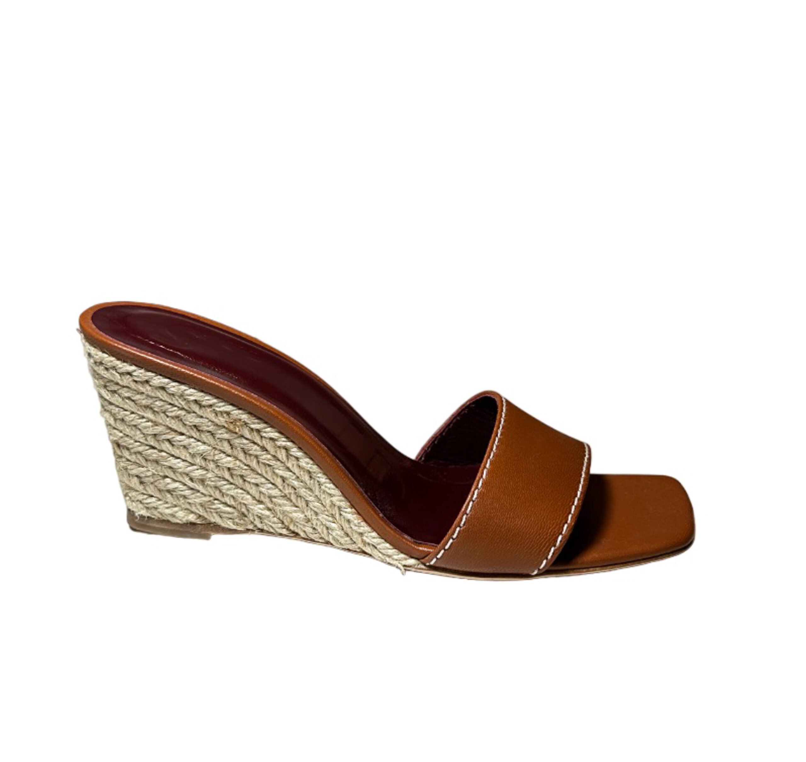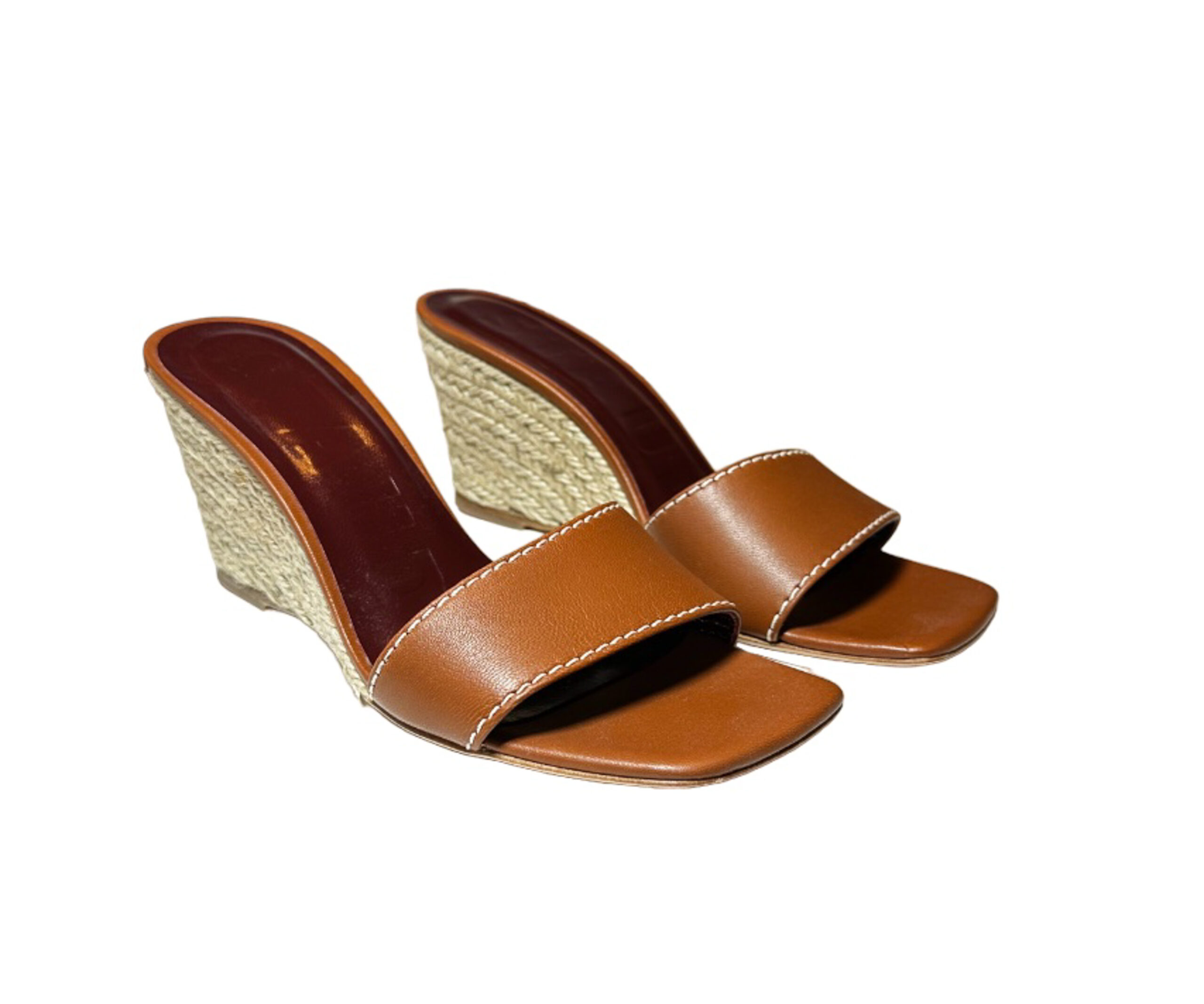 - Style: Billie Brown Leather Espadrille Wedge Slides Mules Sandals