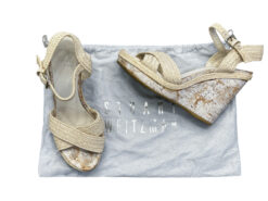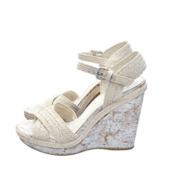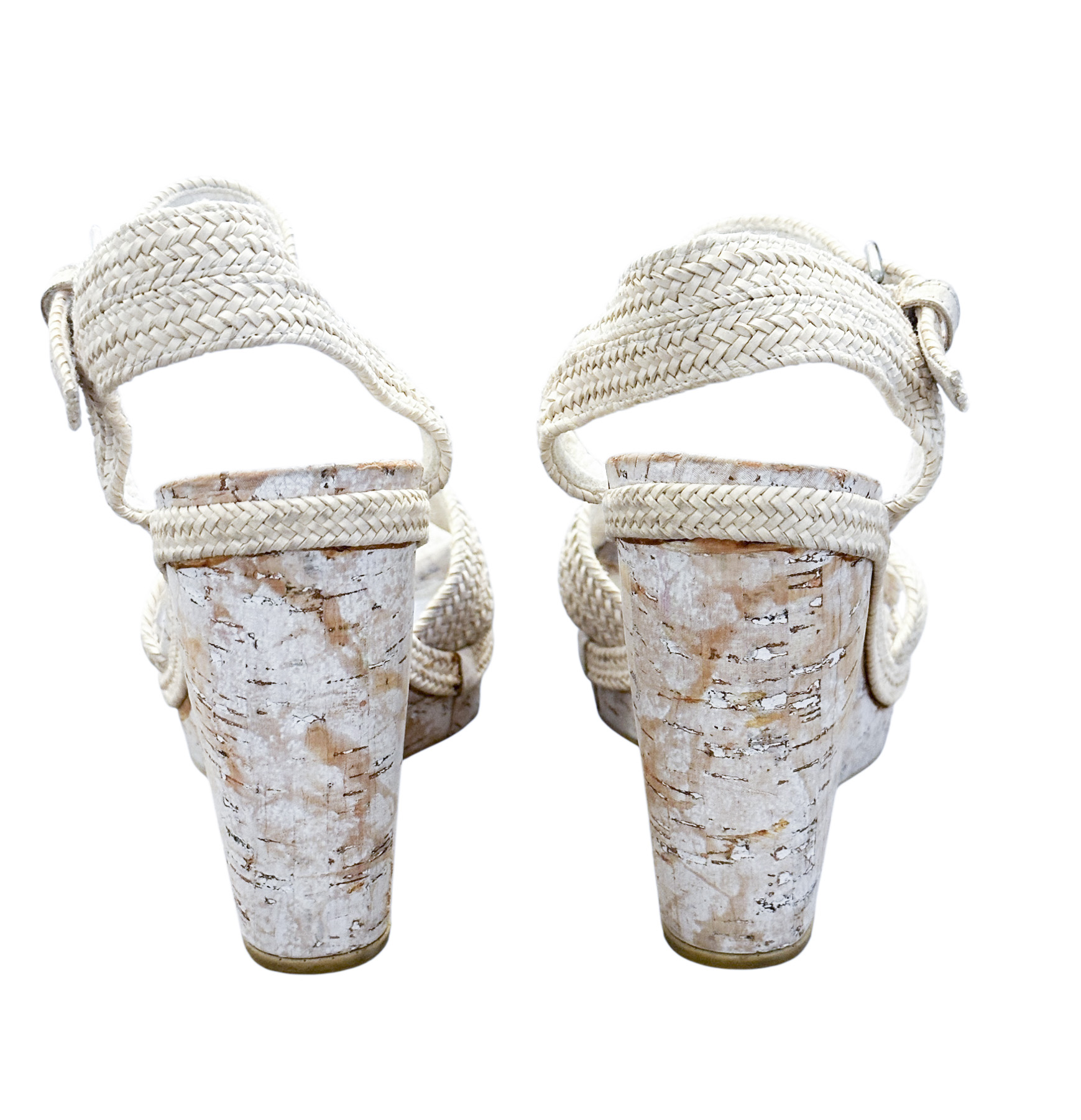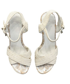 - Style: Minx Ivory Raffia Cork Wedge Ankle Strap Heels Sandals