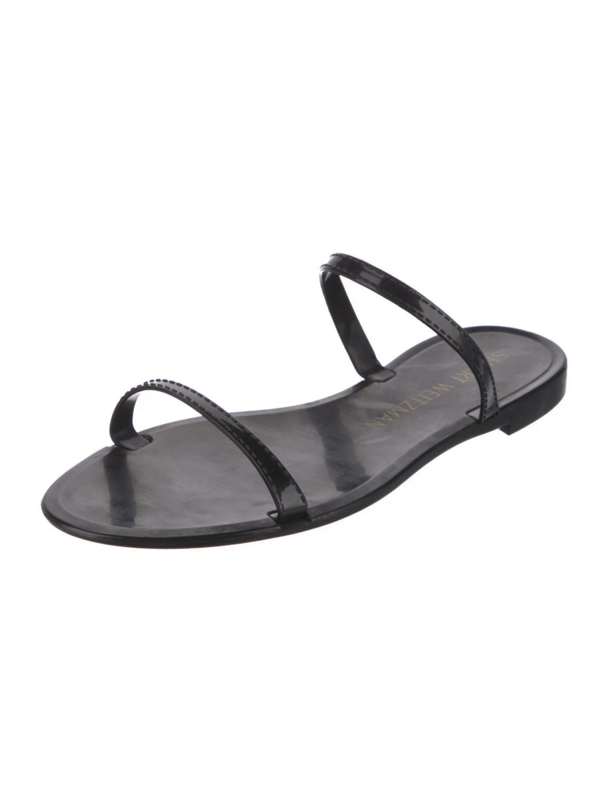- Style: Sawyer PVC Black Rubber Strappy Slide Flat Sandals