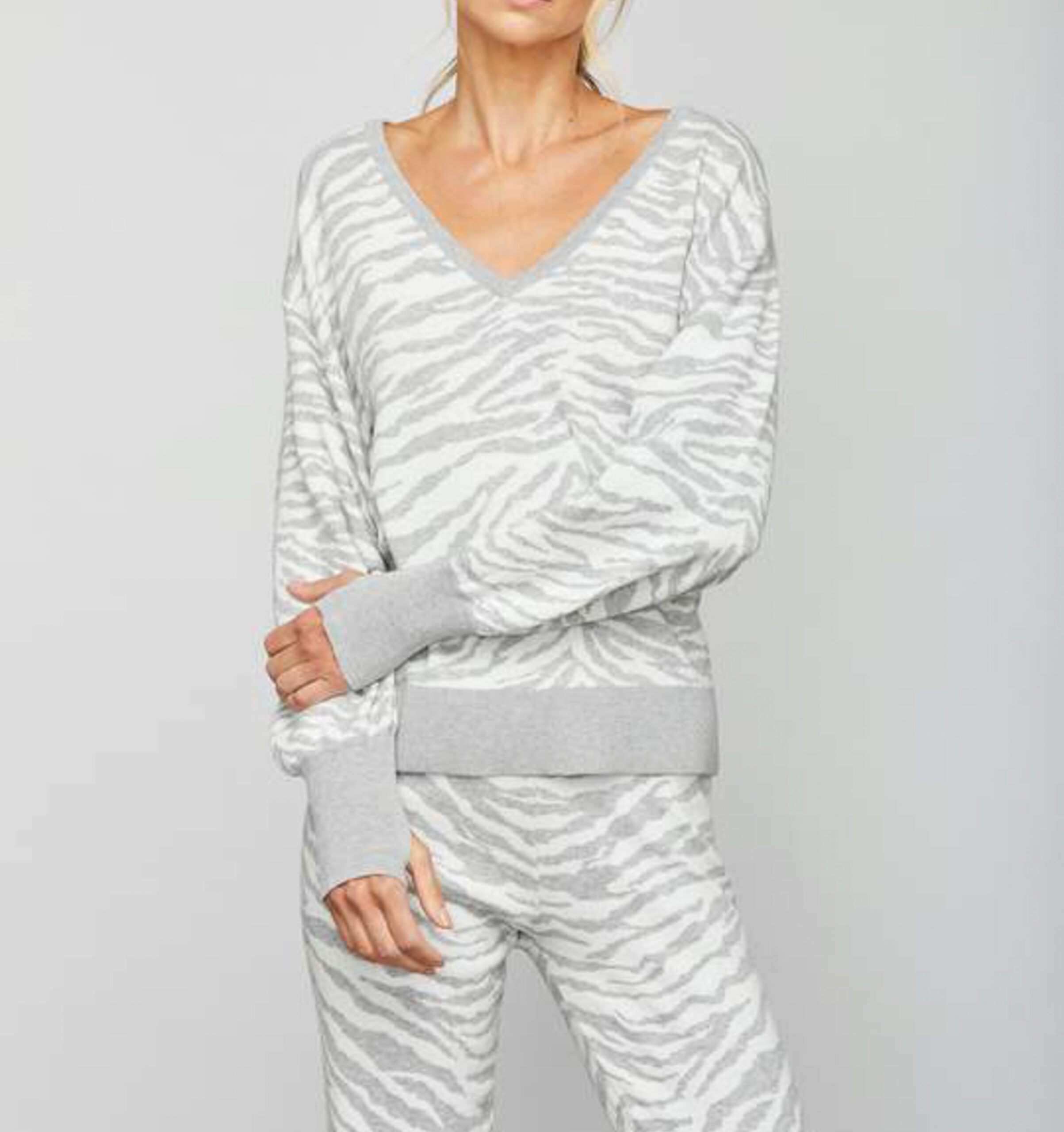 - Style: ASH ZEBRA PRINT V-NECK SWEATER