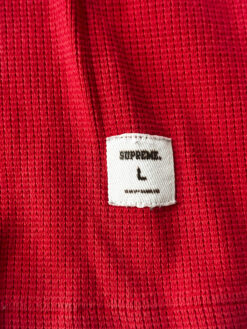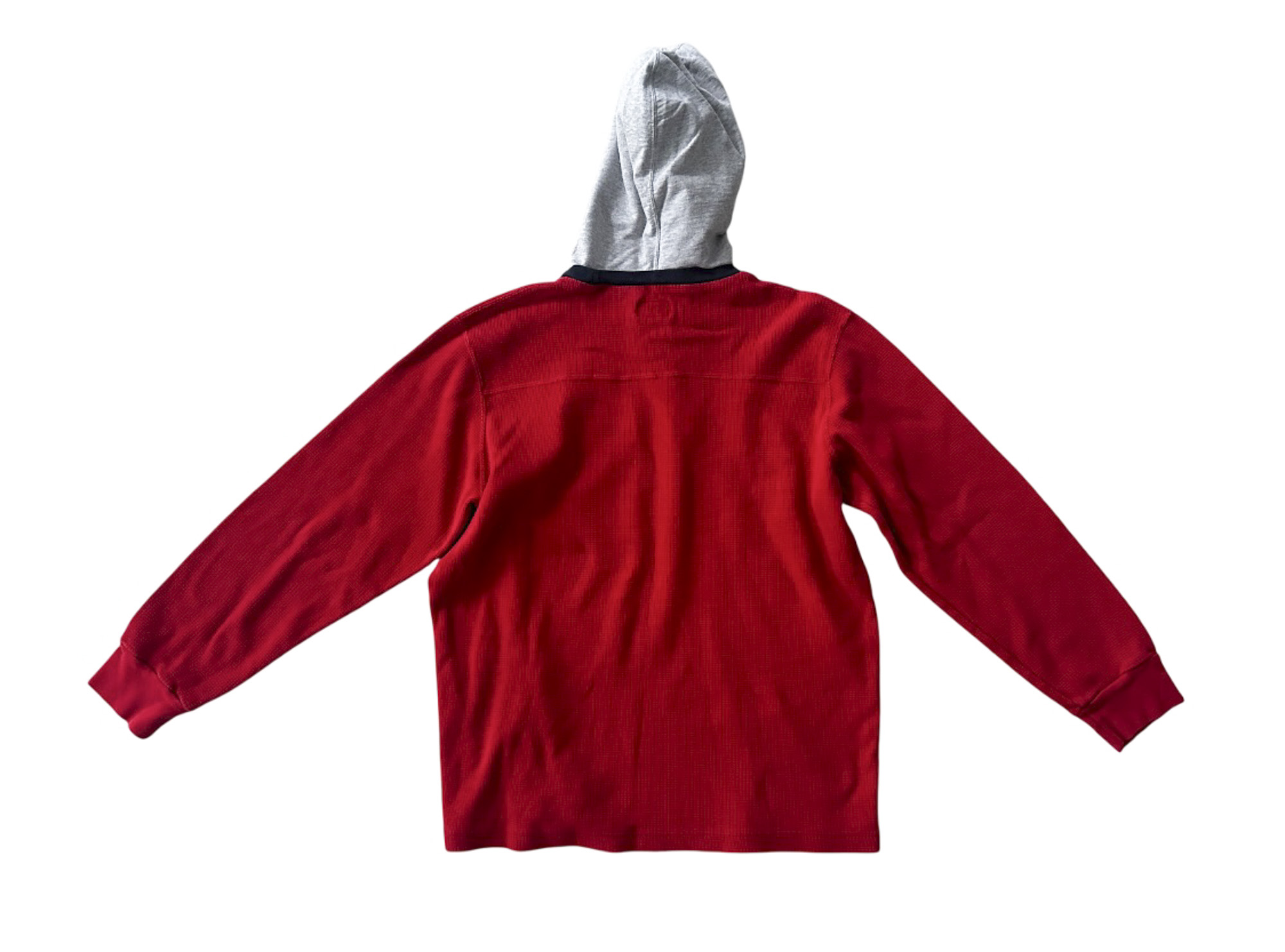 - Style: Red Waffle Knit Thermal Logo Hooded Pullover Sweater