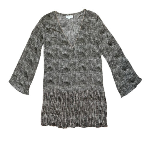 - Style: Printed V-Neck Beaded Long Sleeve Mini Dress