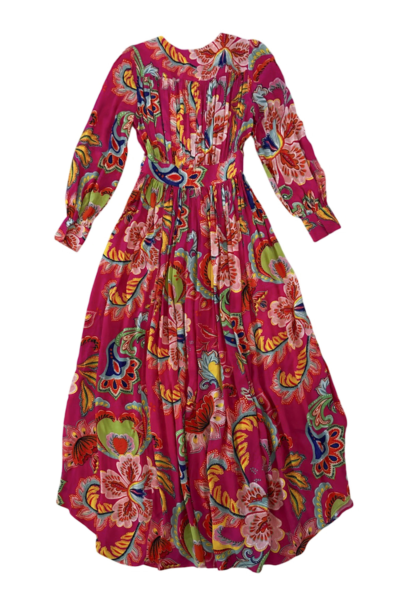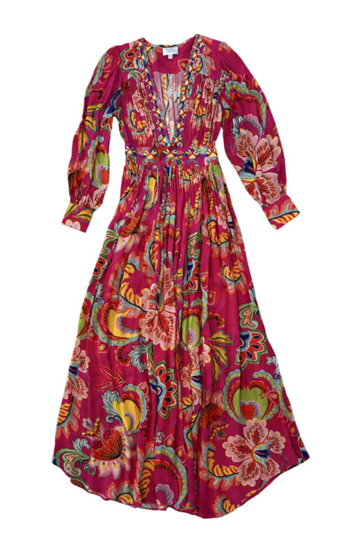 - Style: Pink Floral V-Neck Long Sleeve Maxi Dress