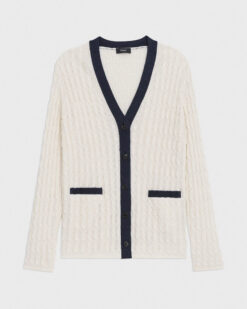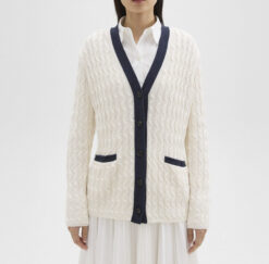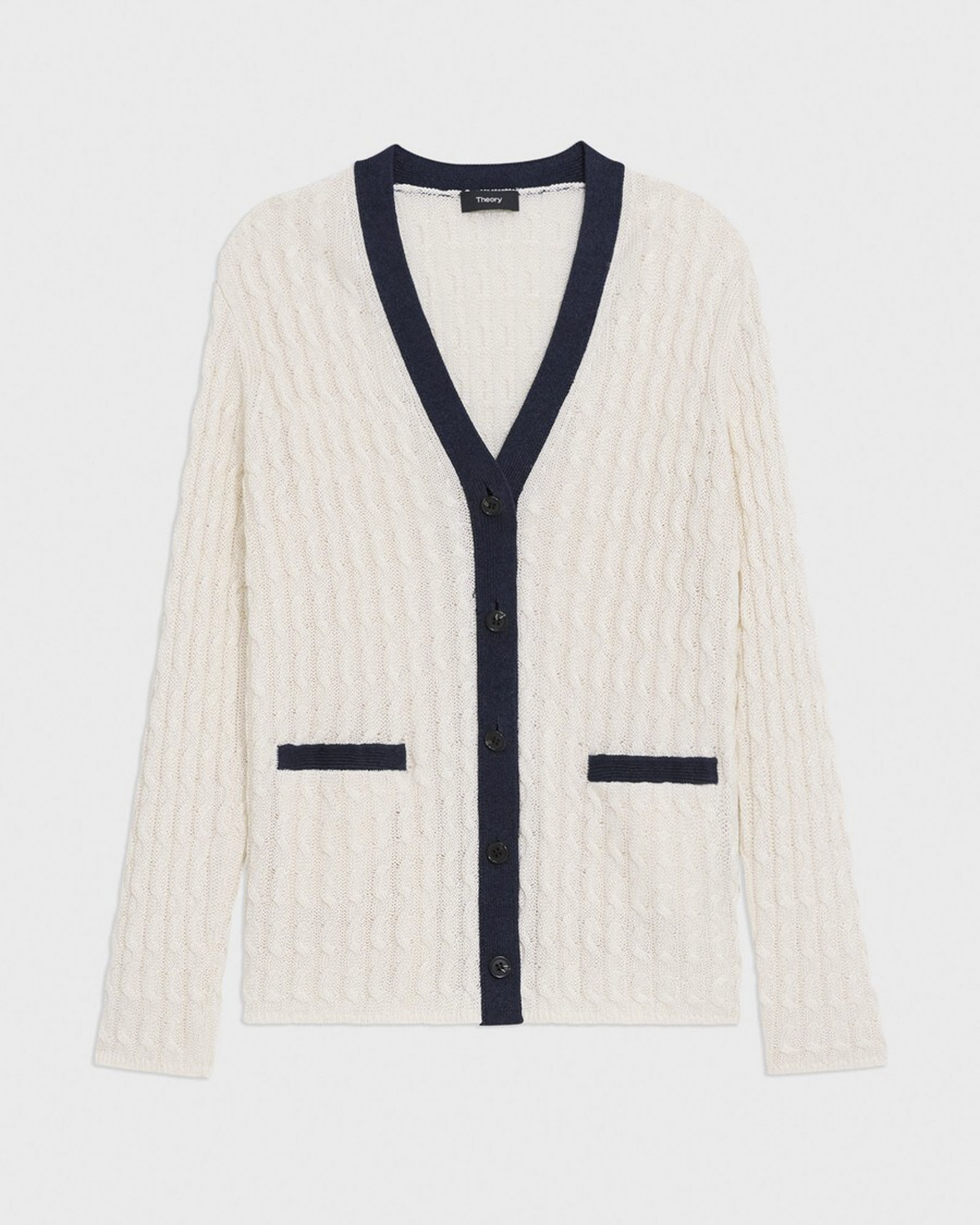 - Style: Ivory Linen Contrast Cable Knit V-Neck Cardigan Sweater