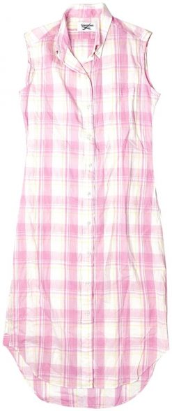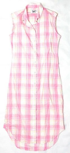 - Style: PINK PLAID COTTON SLEEVELESS MIDI SHIRT DRESS