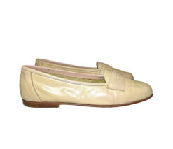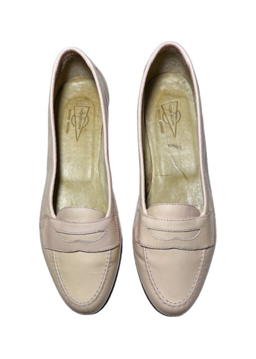 - Style: Vintage Beige Pink Leather Slip On Loafers Flats