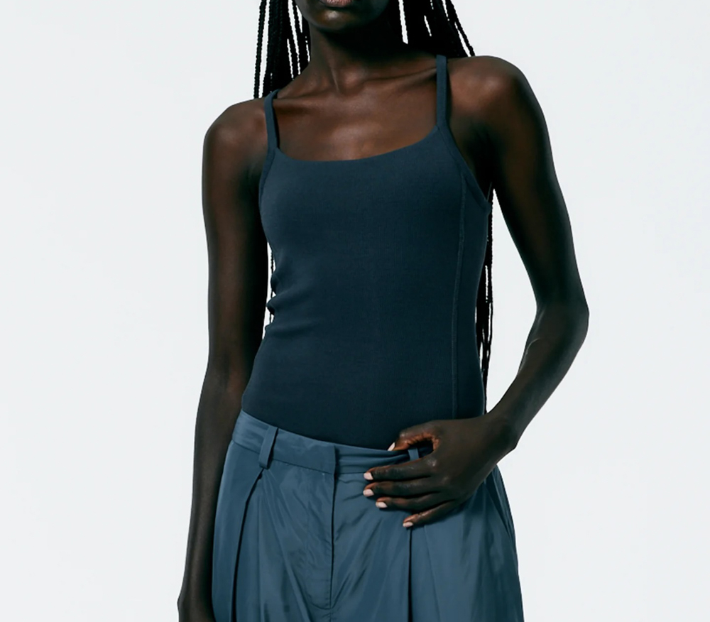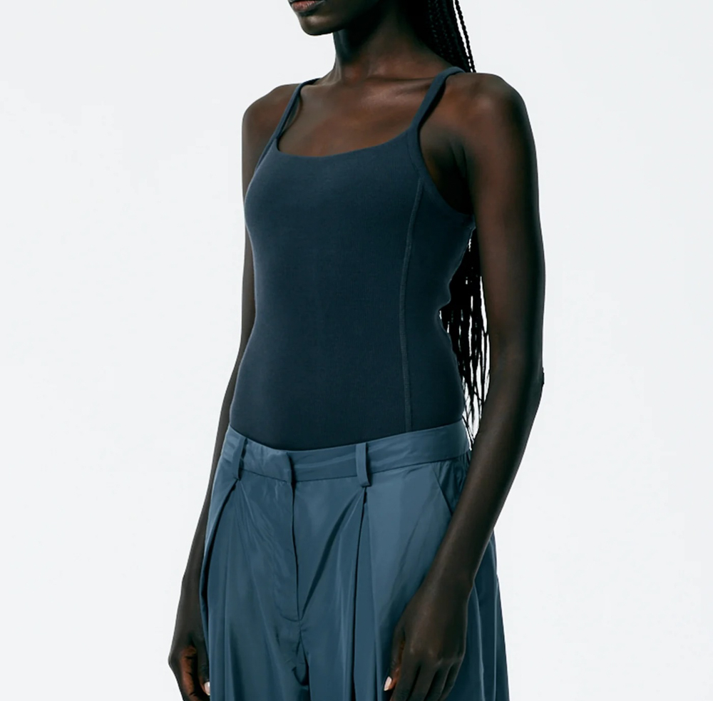 Tibi NWT Ribbed T Racerback Bodysuit Top Small Dark Slate NEW