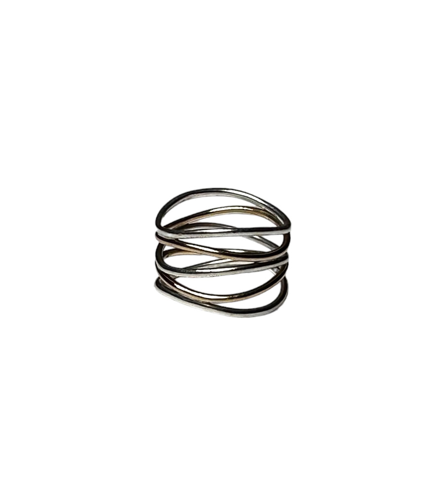 Tiffany & Co x Elsa Peretti 18K Rose Gold Sterling Silver 5 Row Wave Ring Size 5