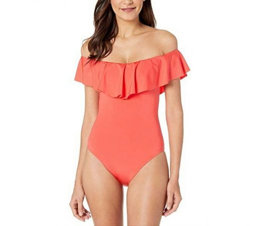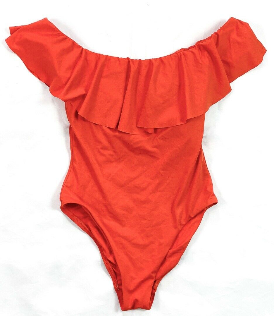 Trina Turk Poppy Off Shoulder Ruffle Bandeau One Piece Swimsuit Size 6