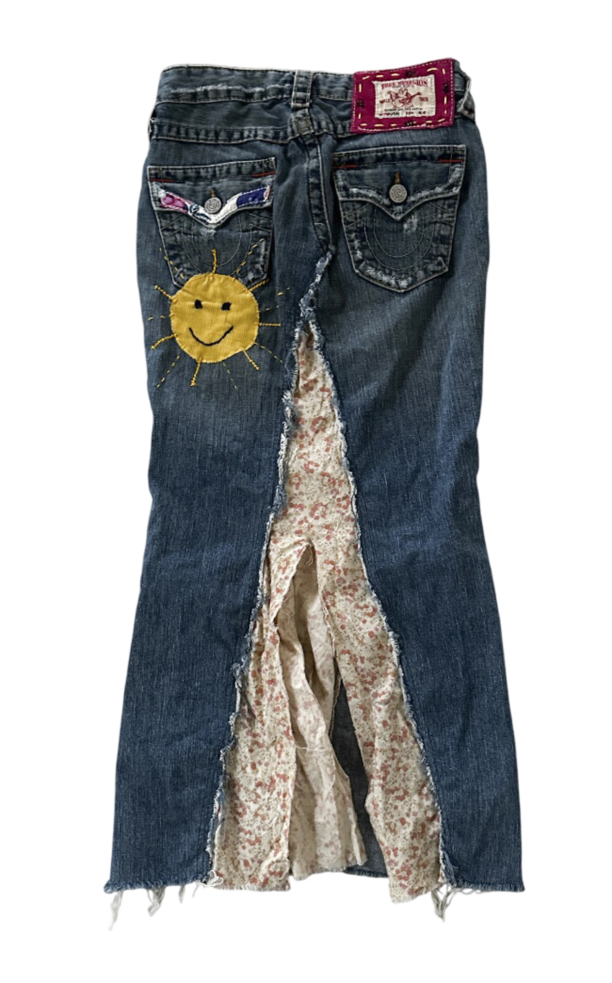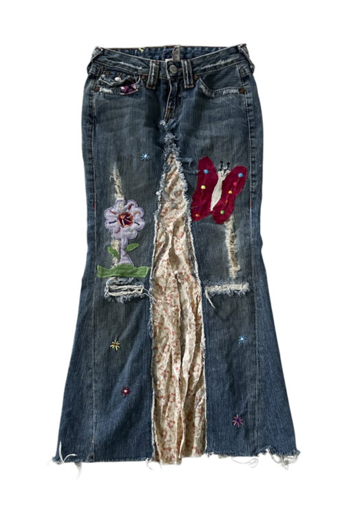 - Style: Rare Vintage Y2K Patchwork Low Rise Denim Maxi Skirt