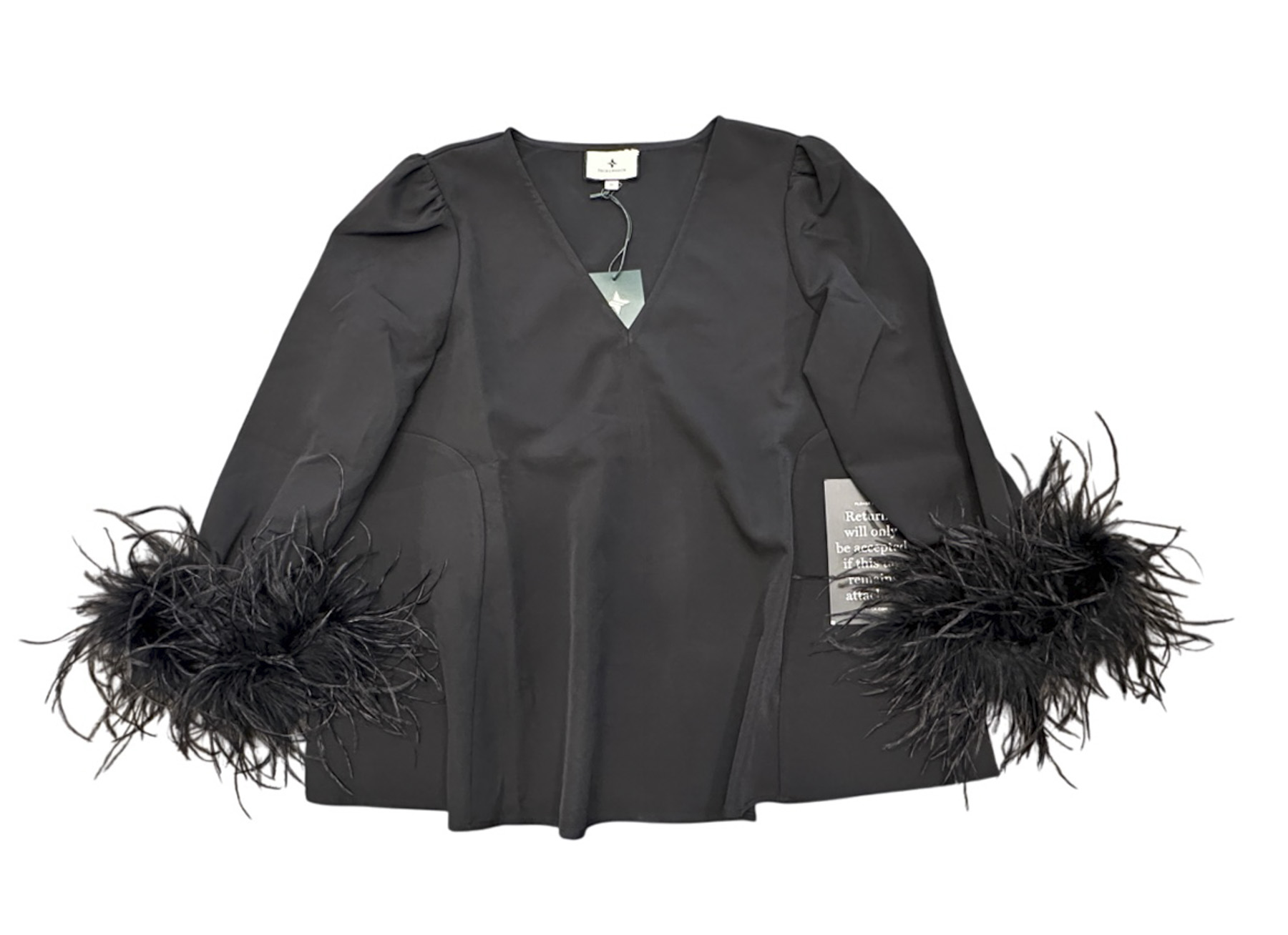 - Style: Easton Black Satin Feather V-Neck Top Blouse