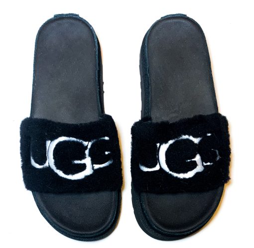 - Style: LATON BLACK FUR LOGO PLATFORM SLIDES SANDALS