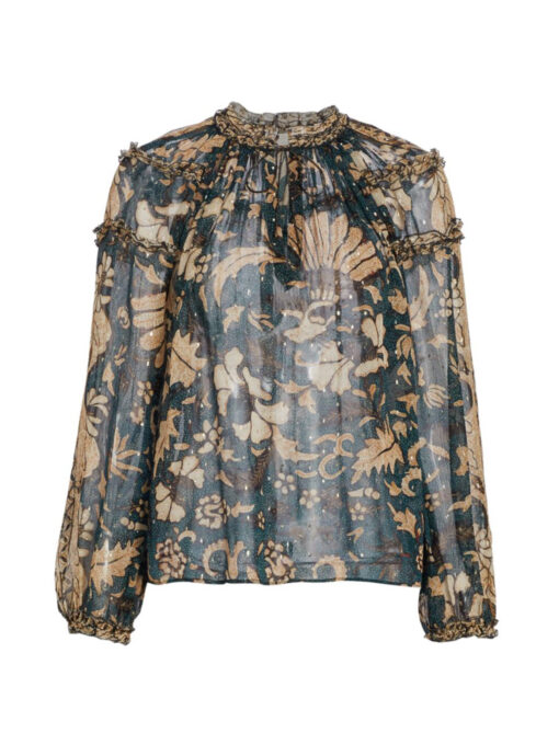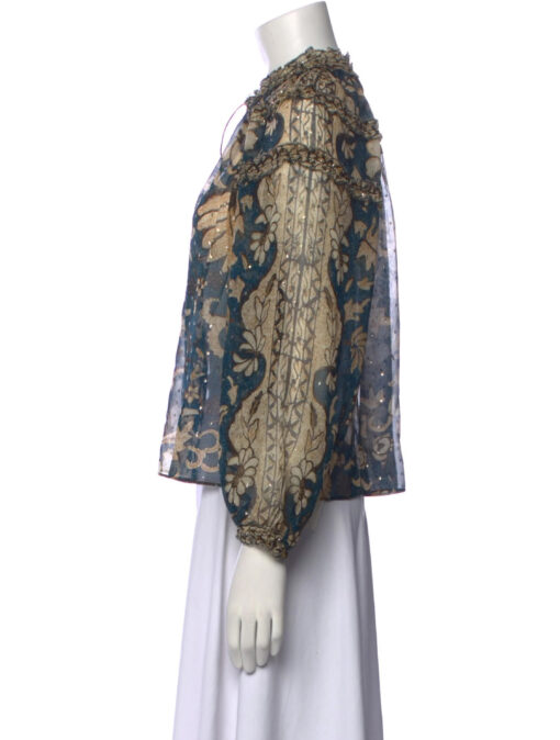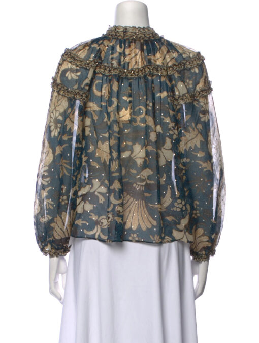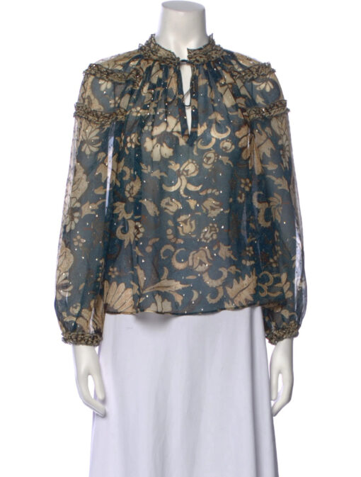 - Style: Adelaide Floral Sheer Silk Long Sleeve Ruffled Top Blouse