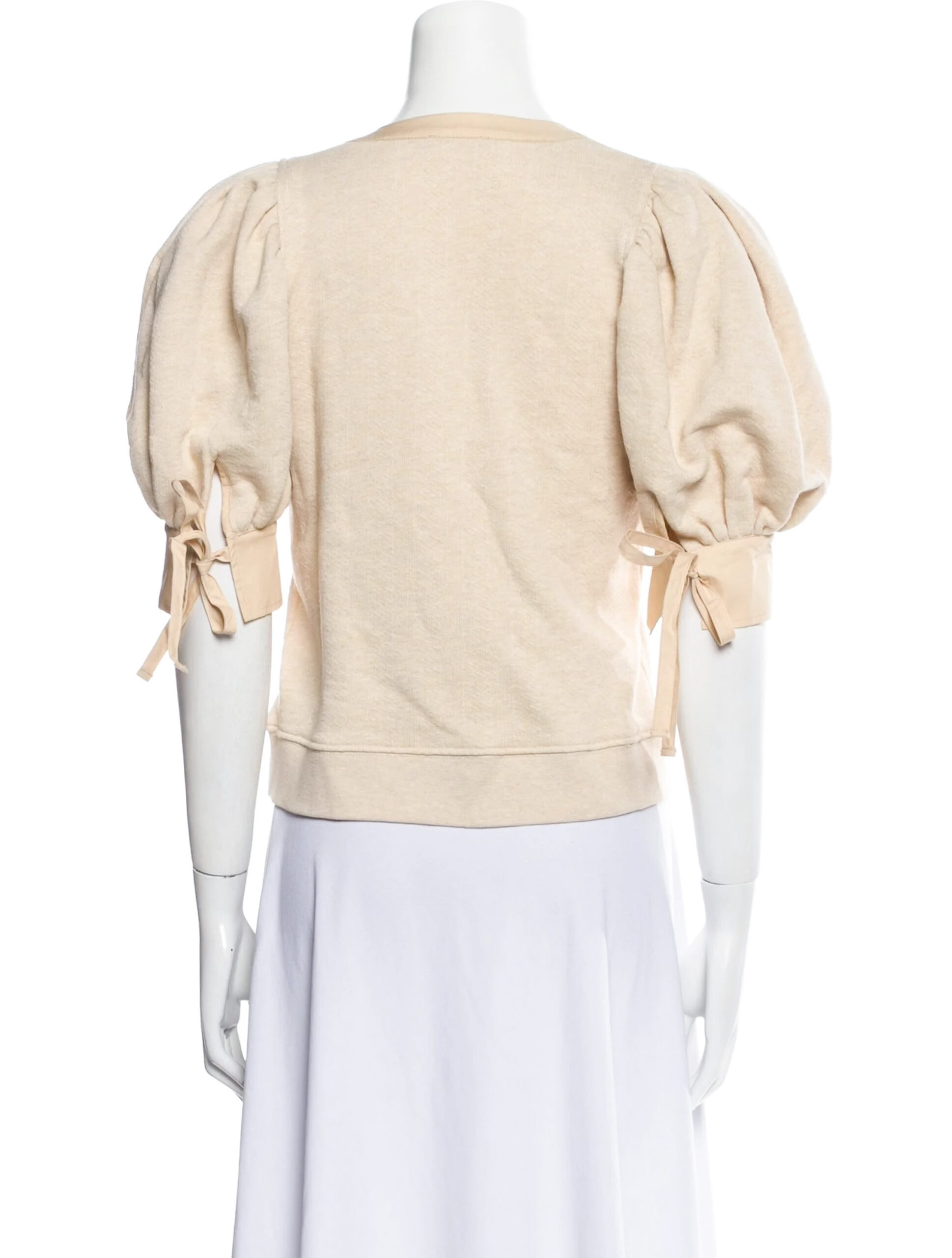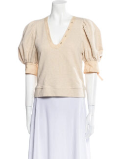 - Style: Bess Poplin Trimmed Puff Sleeve V-Neck Sweater Top