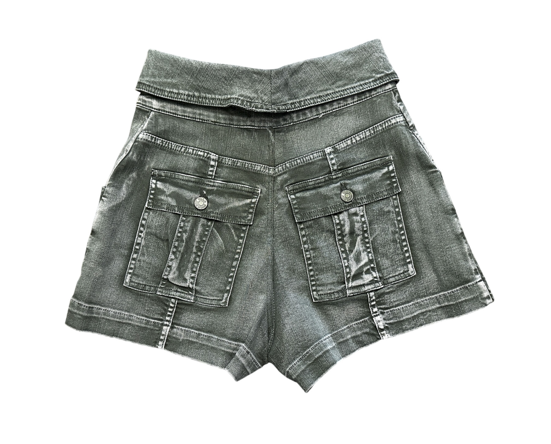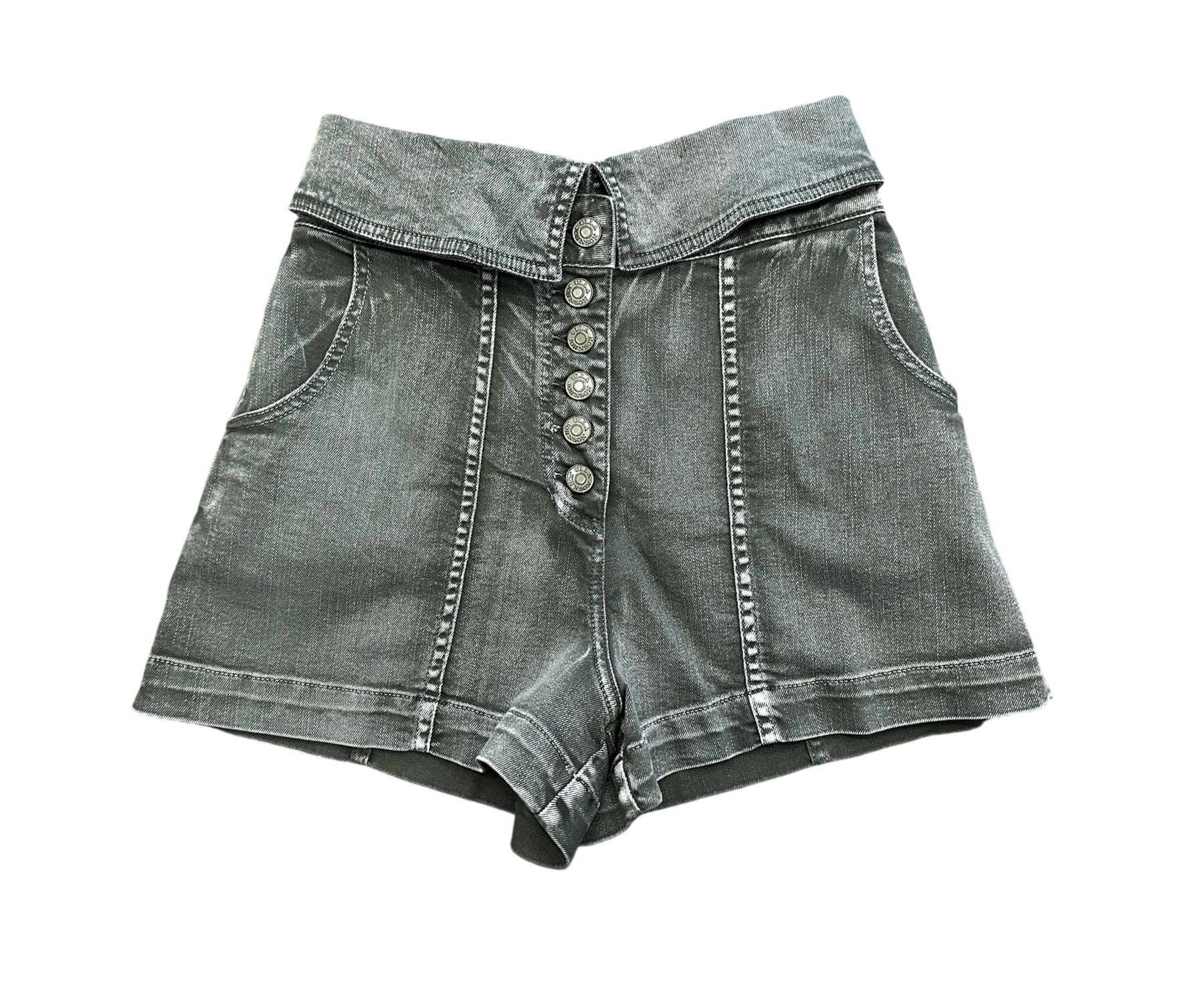 - Style: Kase Army Green Denim High Rise Button Up Foldover Shorts