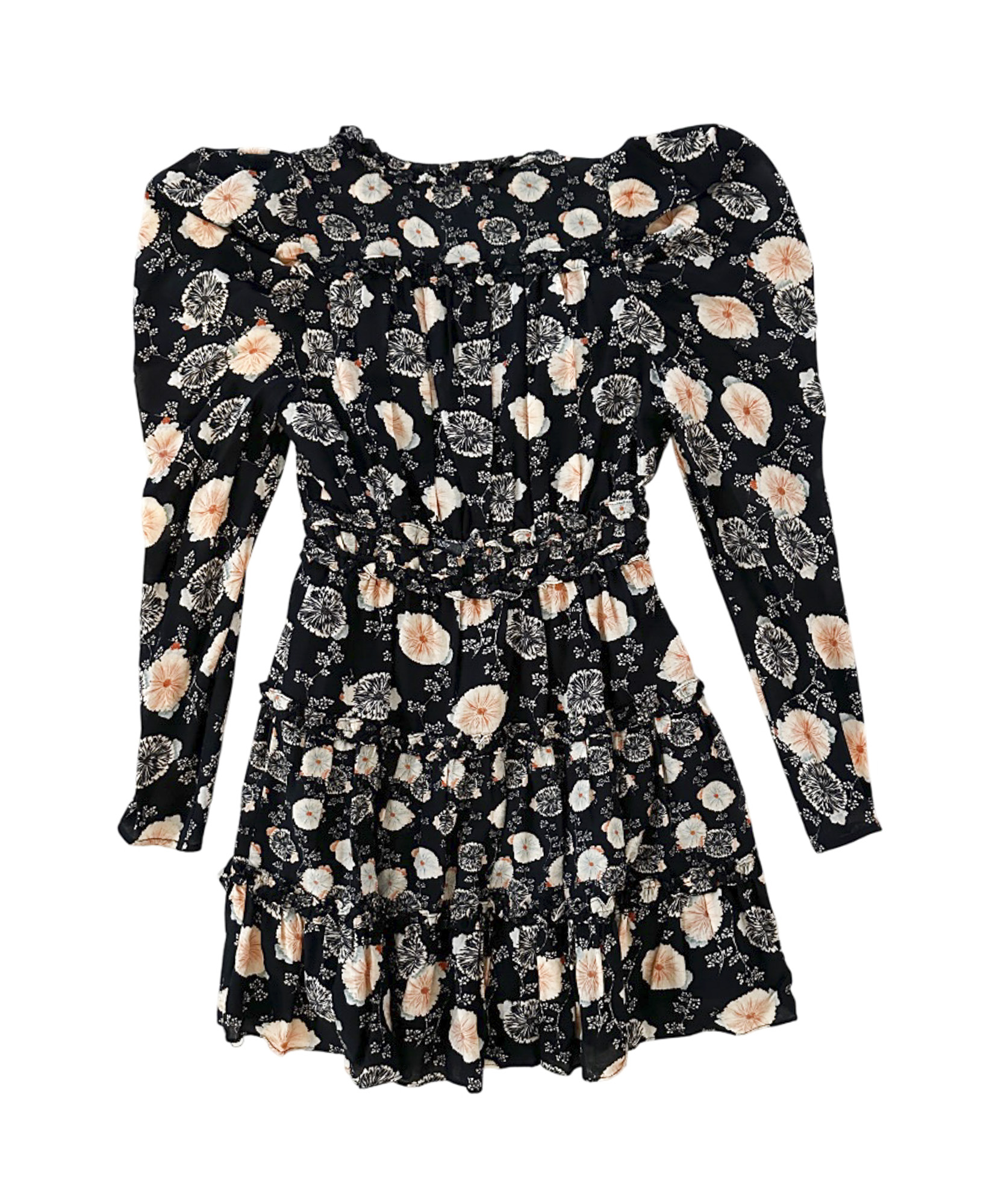 Ulla Johnson Winsor Floral V-Neck Puff Sleeve Tiered Mini Dress Size 2