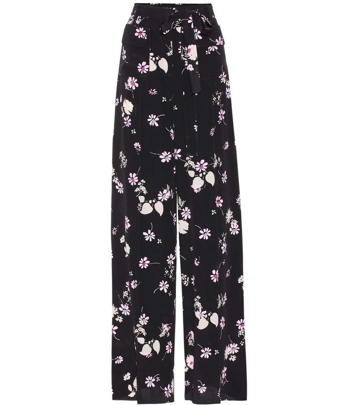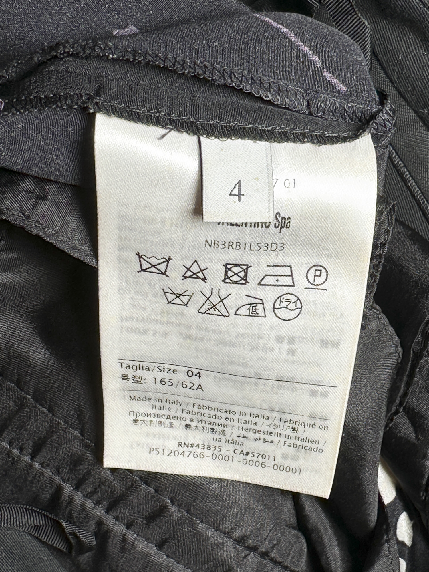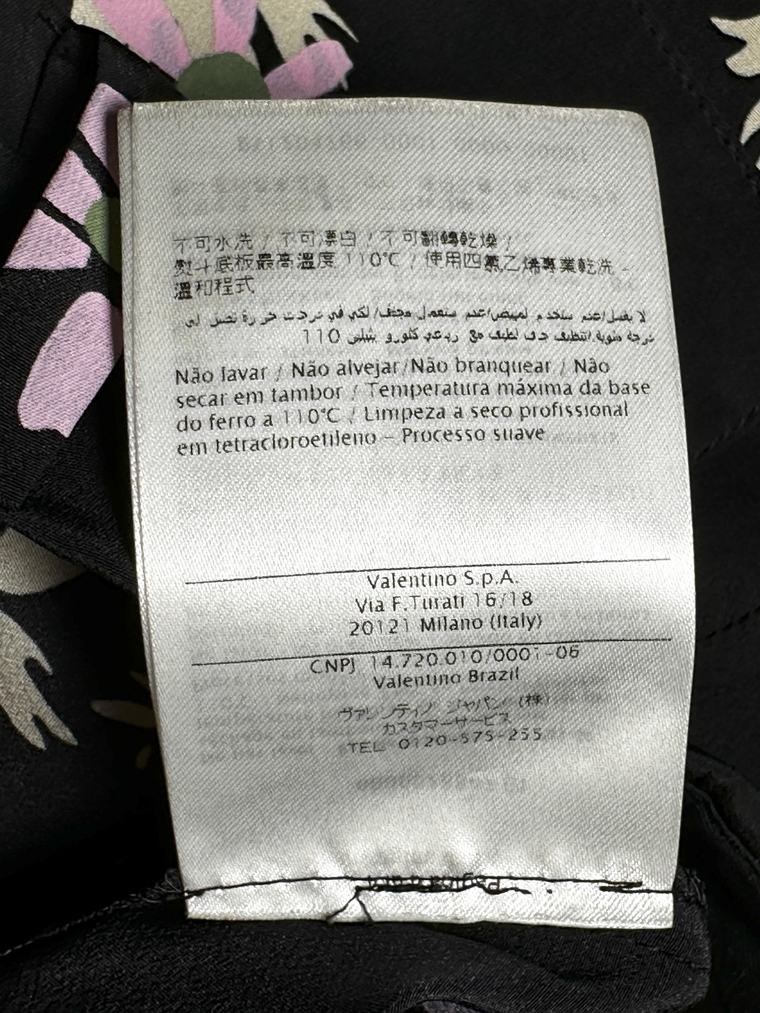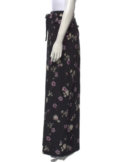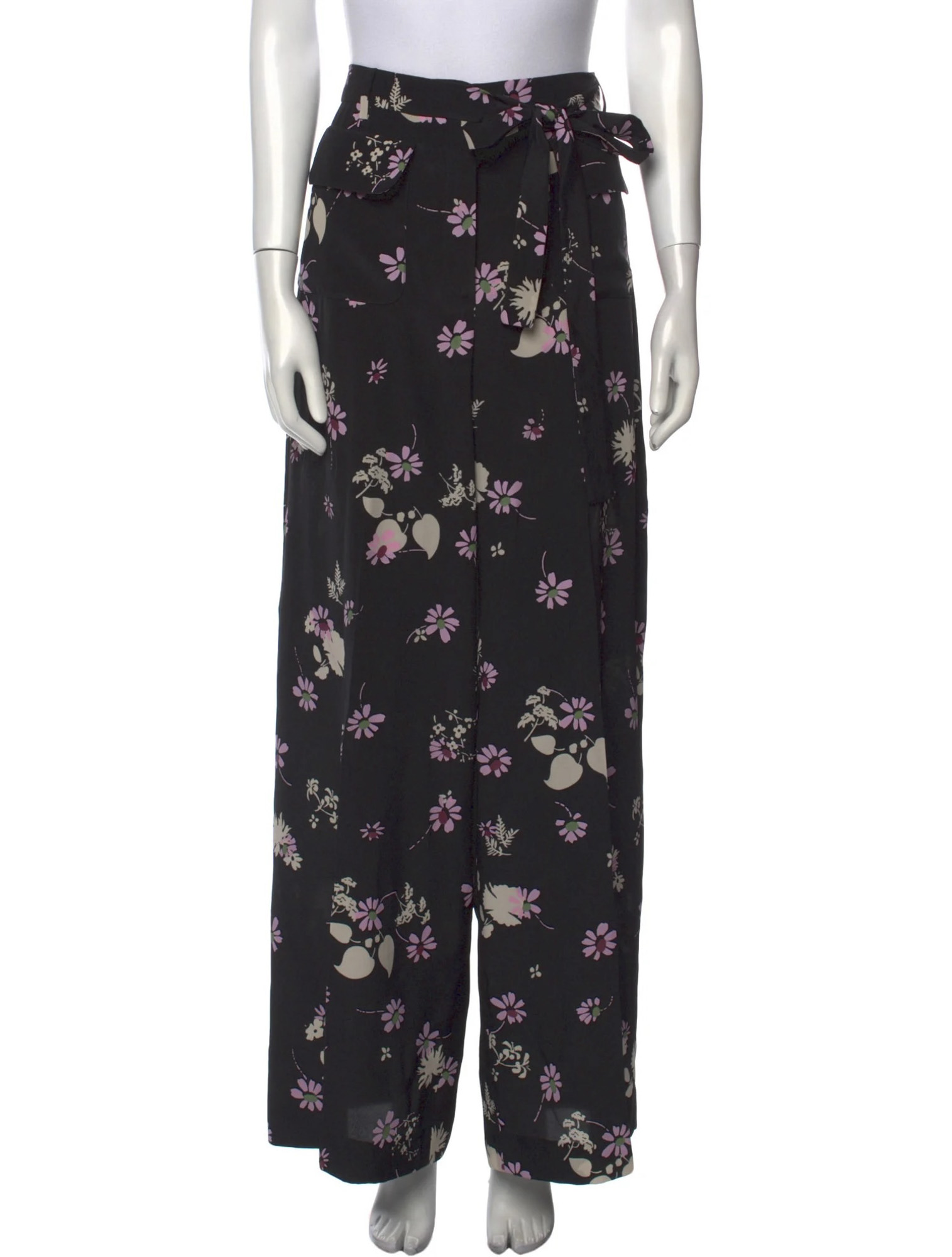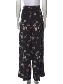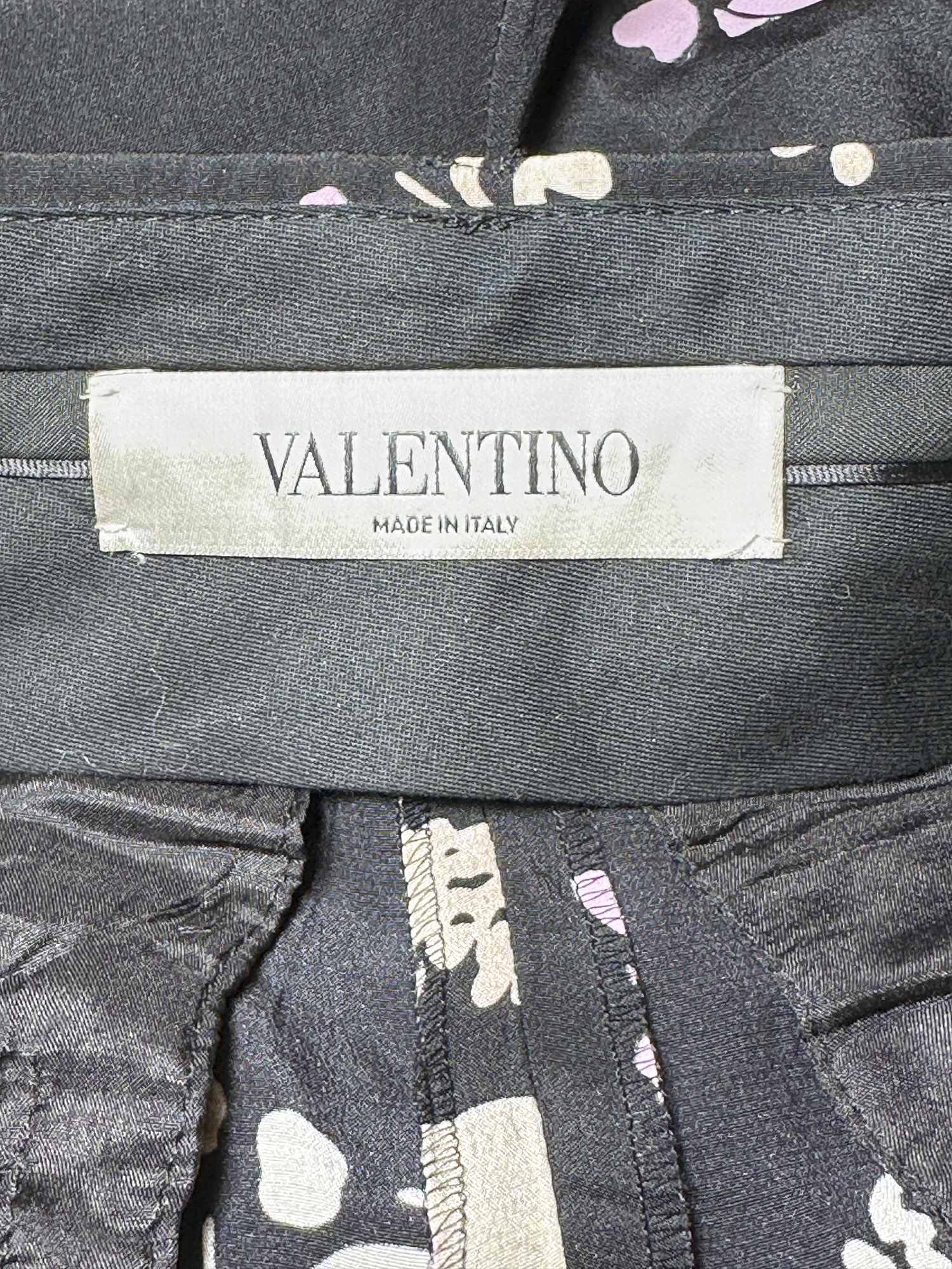 Valentino Black Floral Silk Crepe De Chine High Rise Wide Leg Pants Size 4