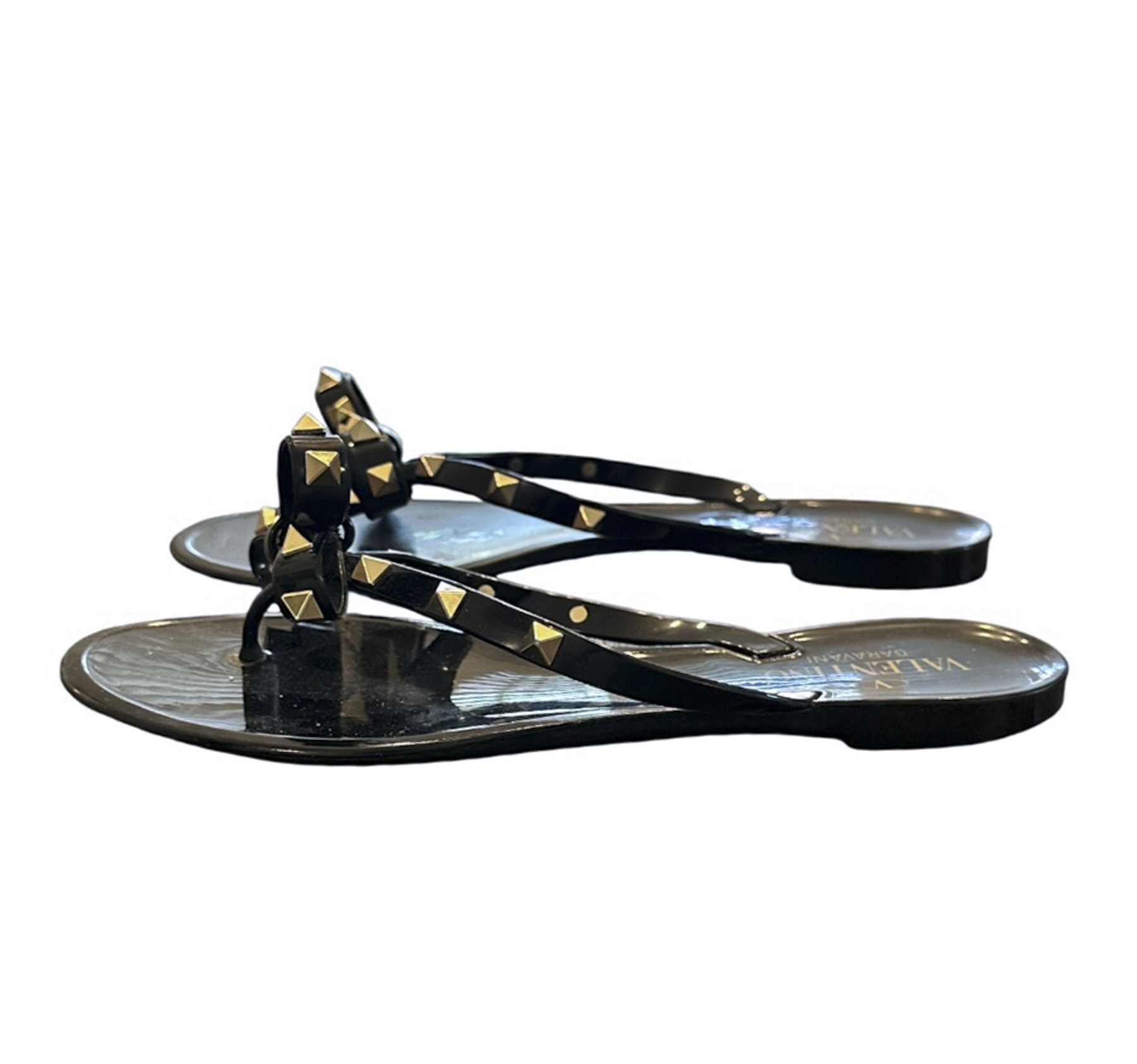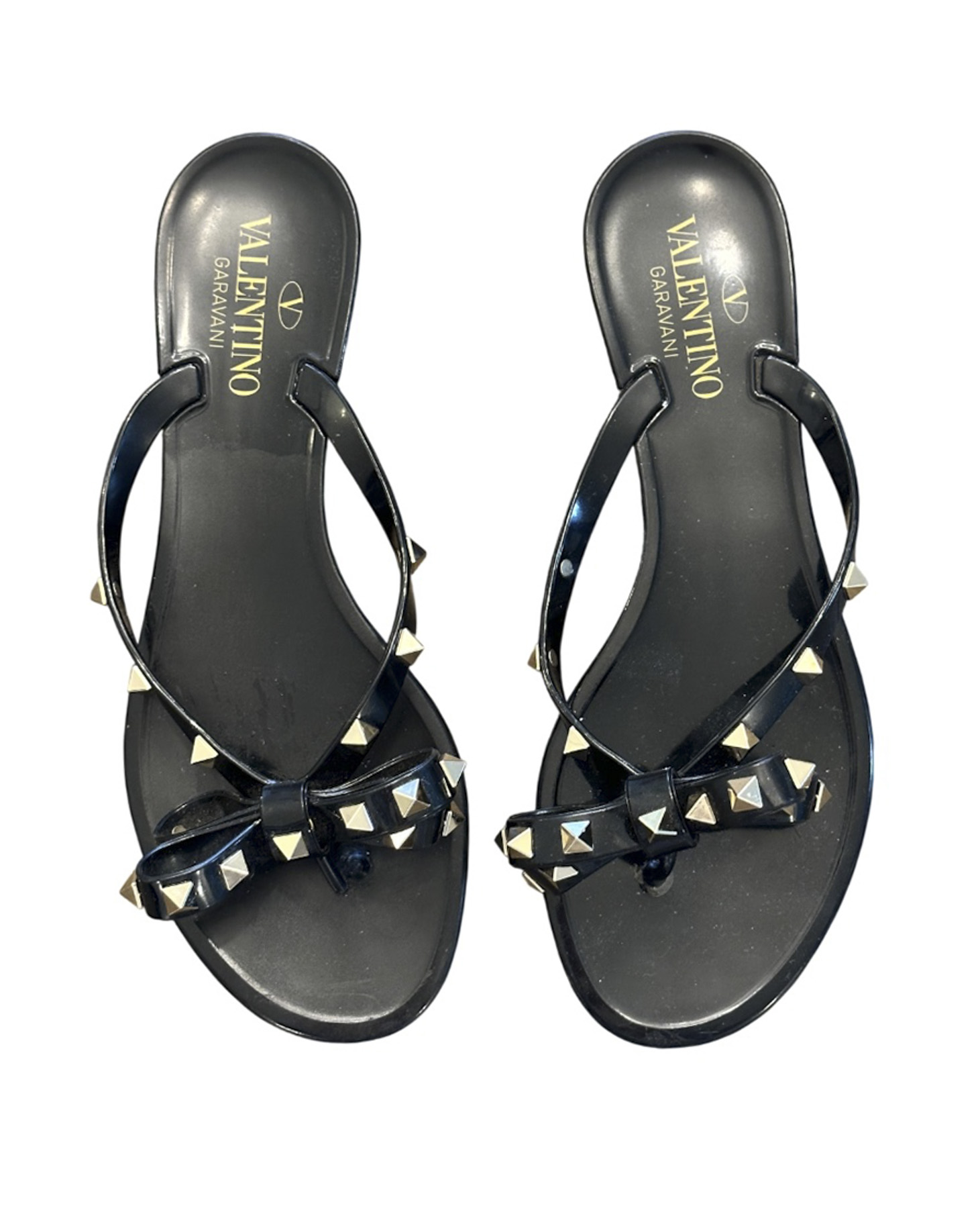 - Style: Black PVC Jelly Rockstud Thong Bow Flat Sandals Shoes