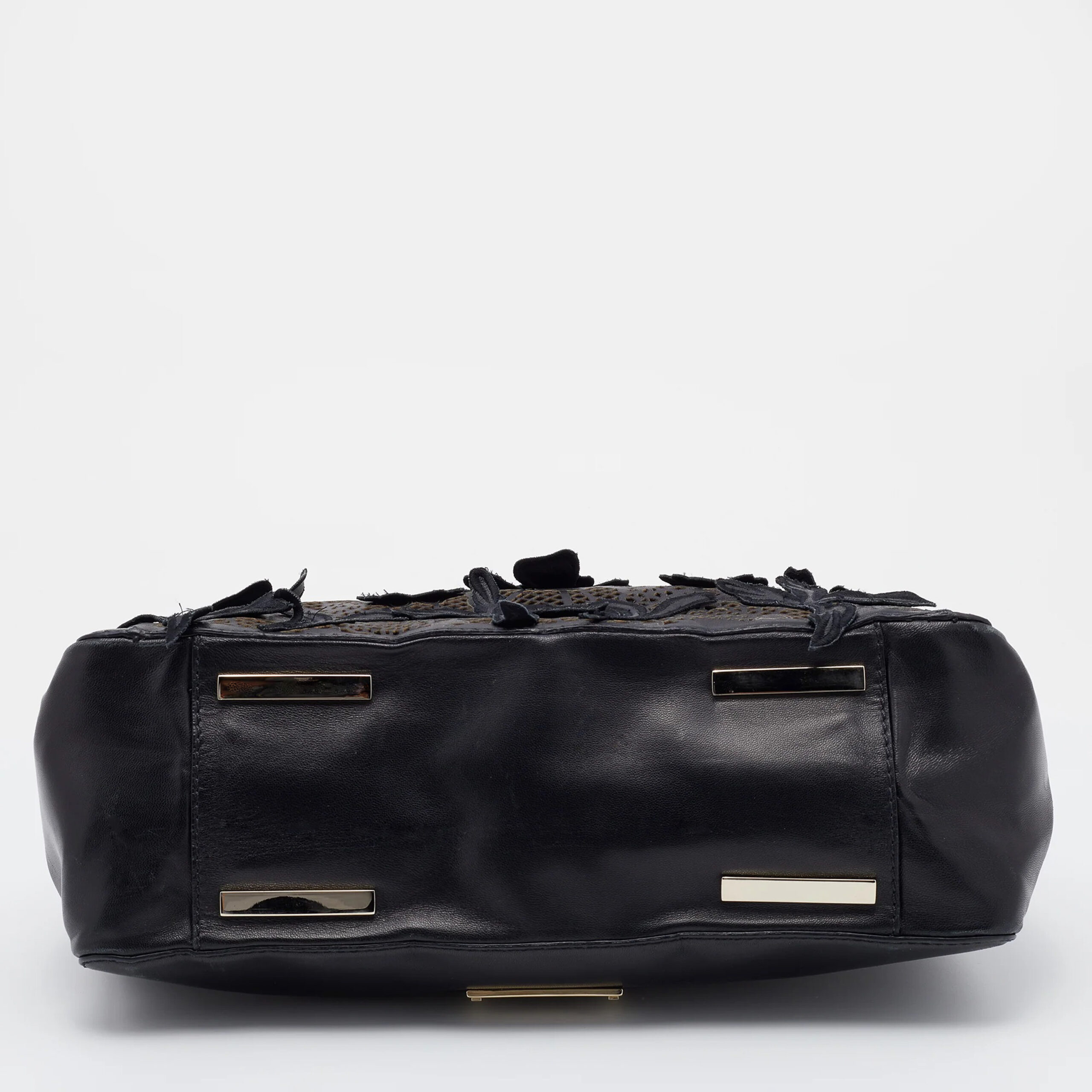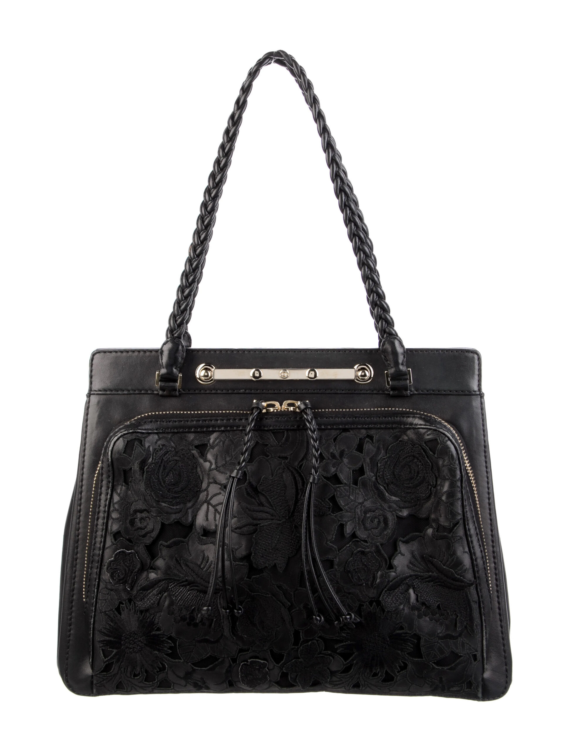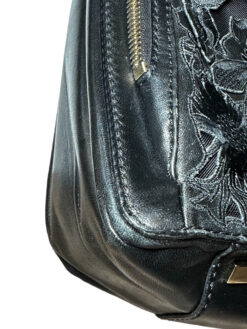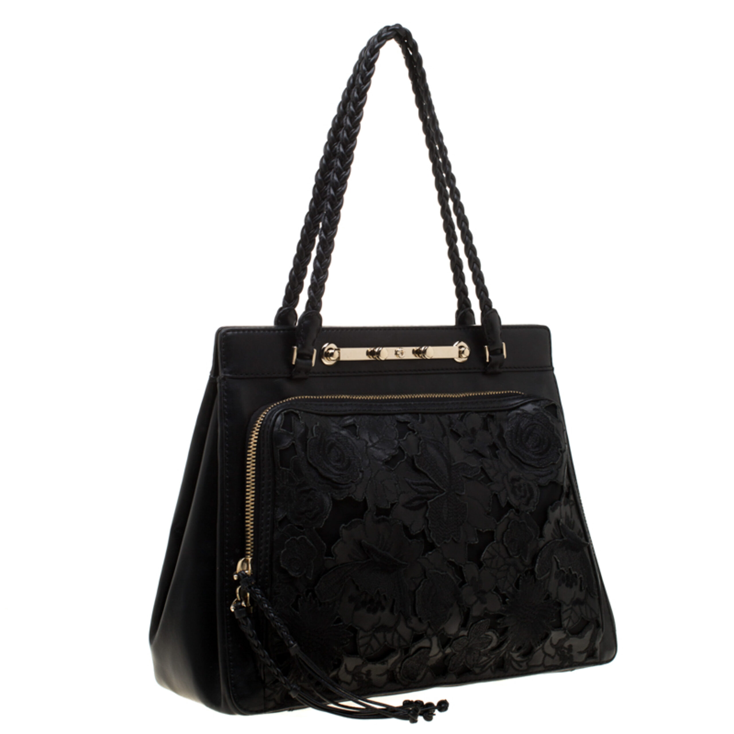 - Style: DEMETRA BLACK LEATHER FLORAL LACE FRAME TOTE BAG