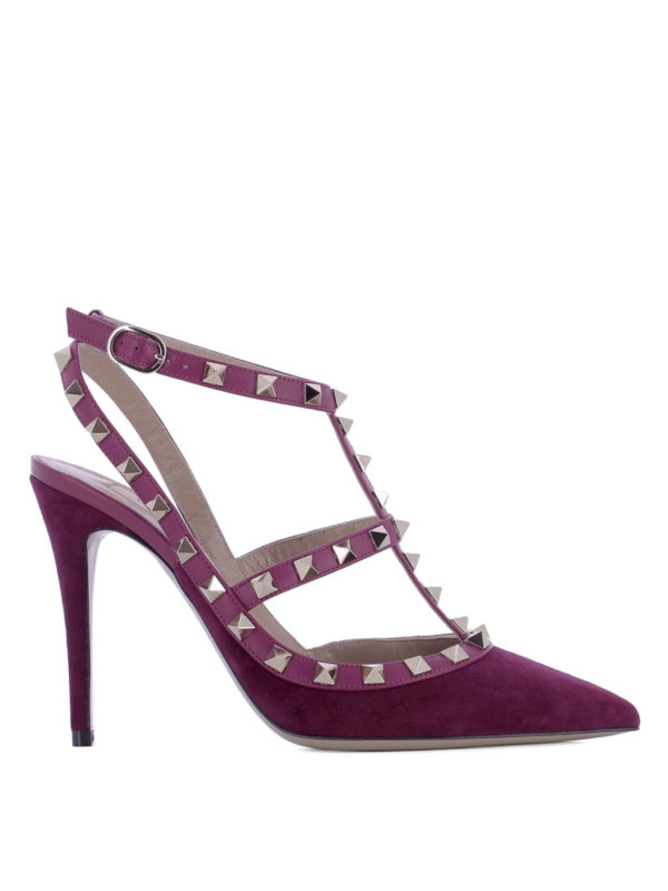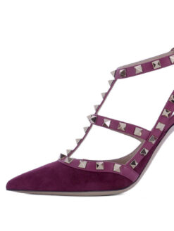 - Style: Camelia Suede Rockstud Caged Ankle Strap Heels Pumps