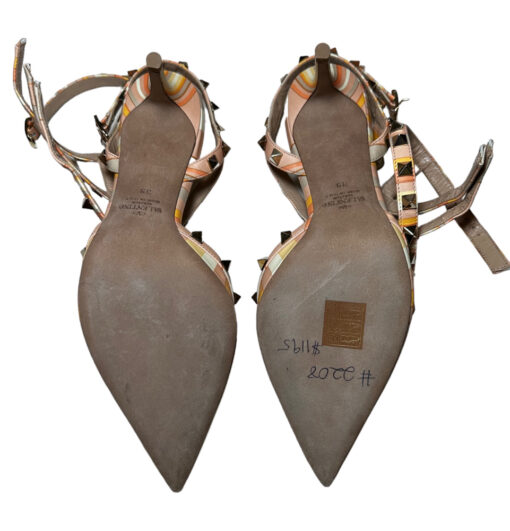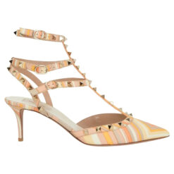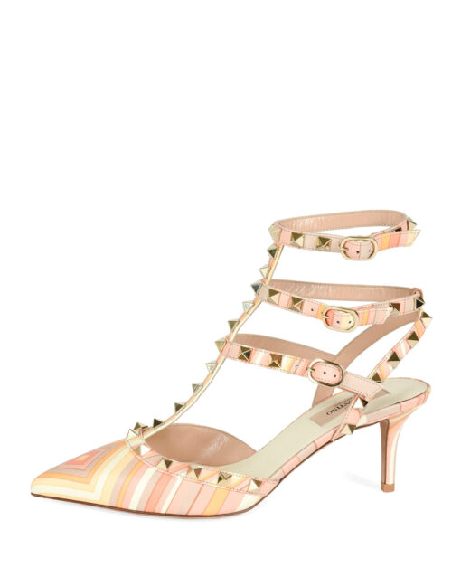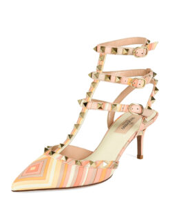 - Style: Rockstud Pointed Toe Stiletto Heel Striped Caged Pumps
