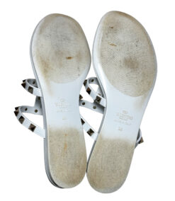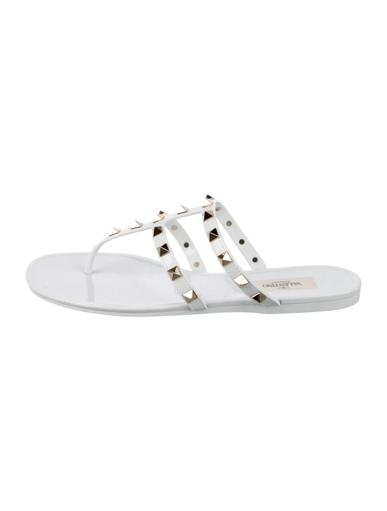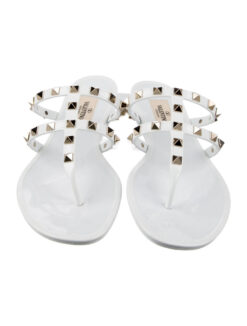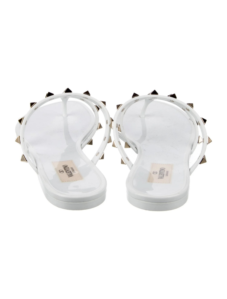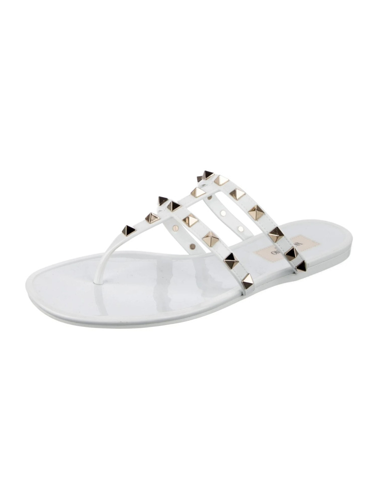 - Style: PVC Jelly White Rockstud Caged Flat Thong Sandals