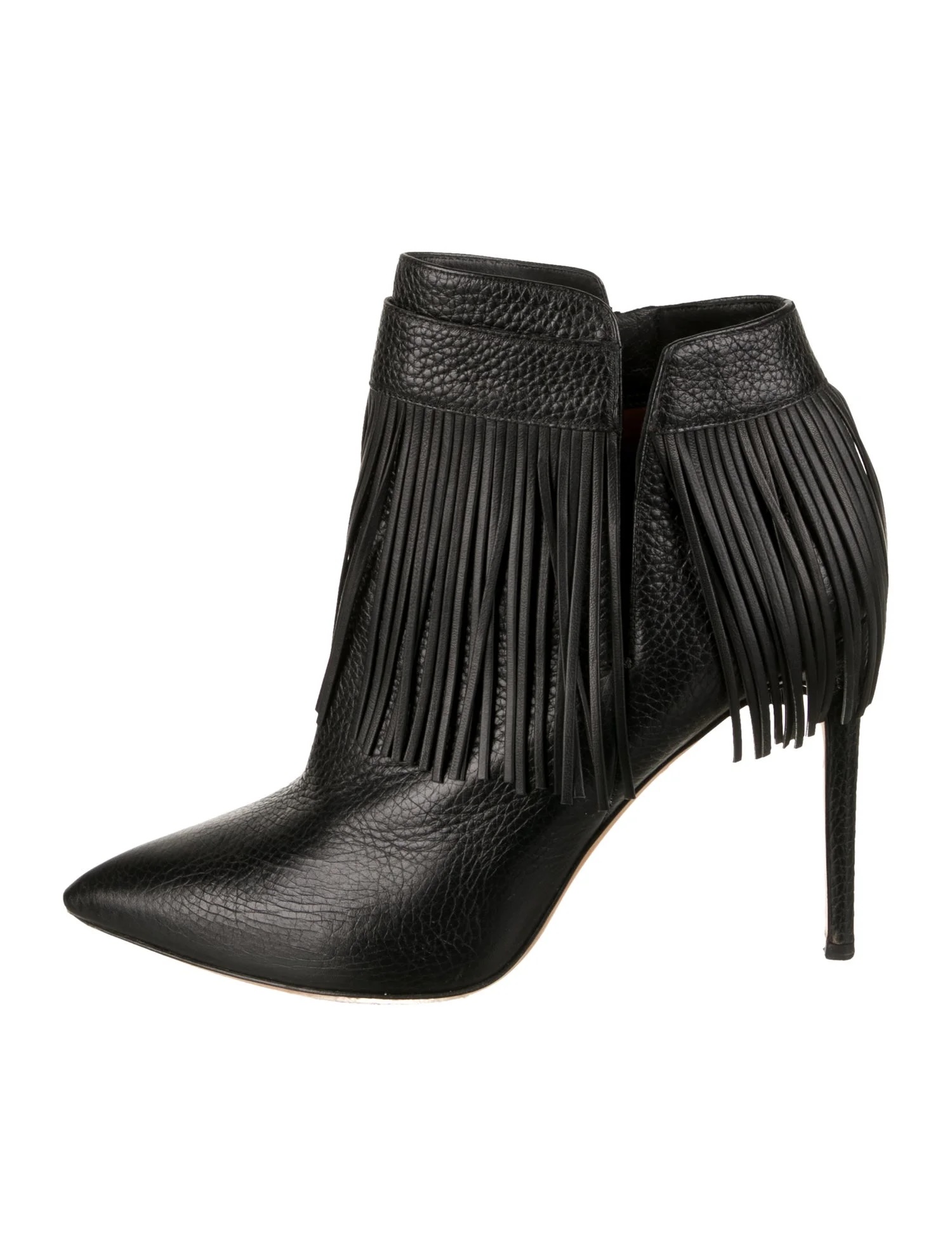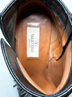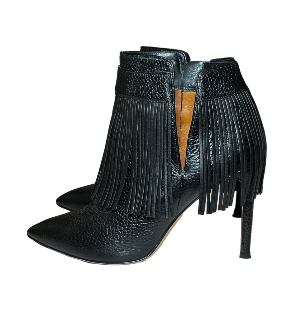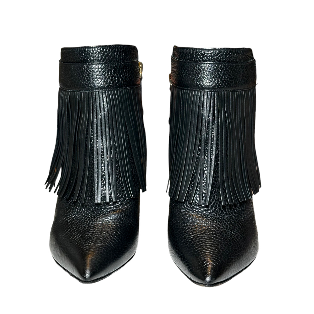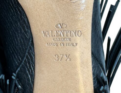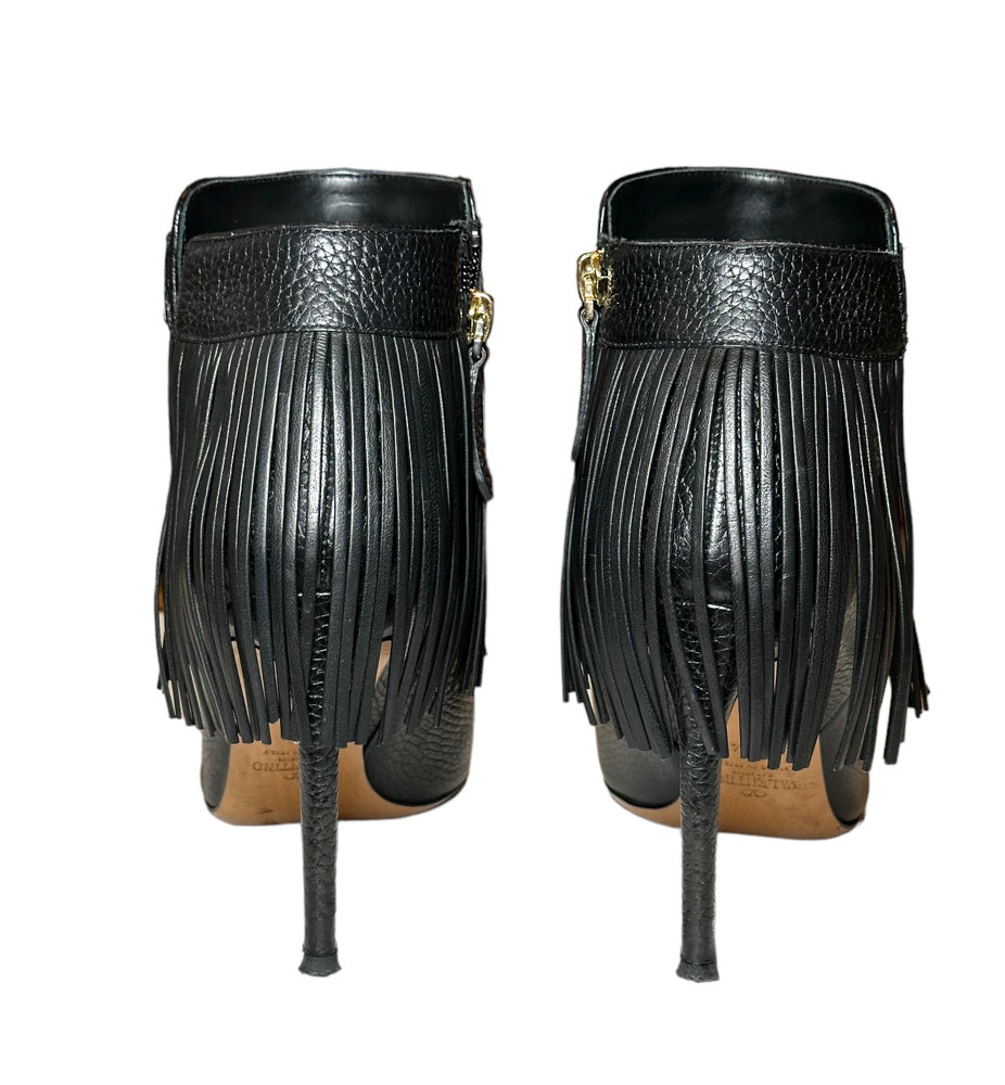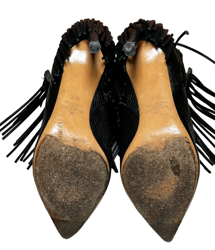 VALENTINO GARAVANI Rockee Black Calfskin Leather Fringe Ankle Booties Size 37.5
