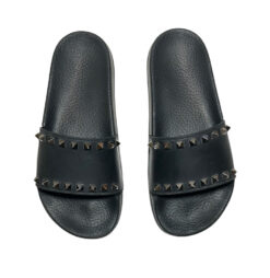 - Style: Rockstud Black Rubber Slides Flat Sandals