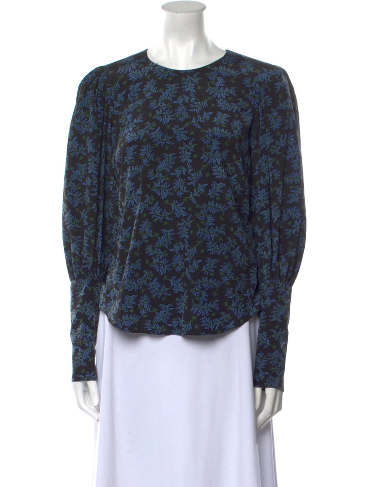 - Style: Clarke Silk Crew Neck Long Puff Sleeve Top Blouse