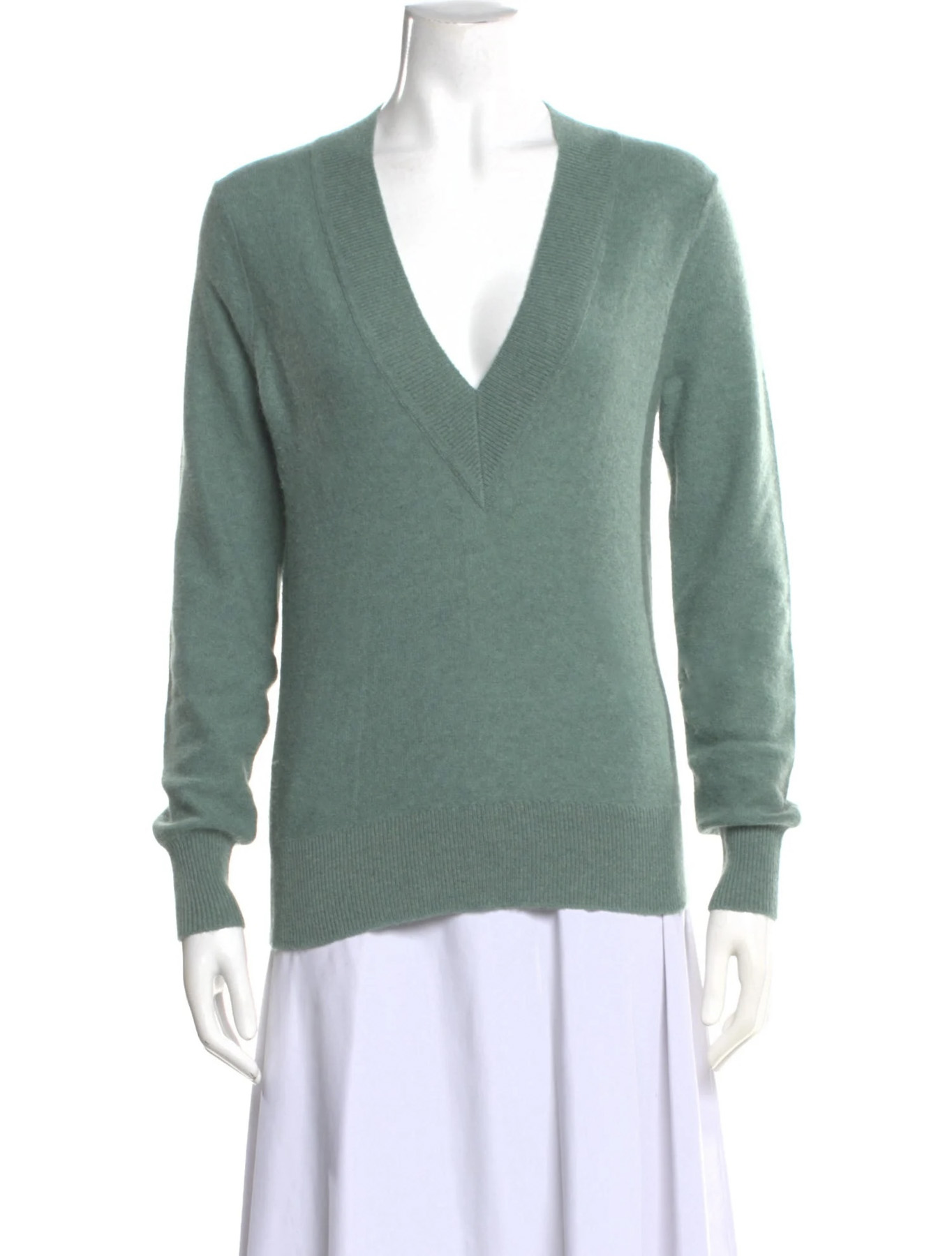 - Style: Green Cashmere Knit V-Neck Pullover Sweater