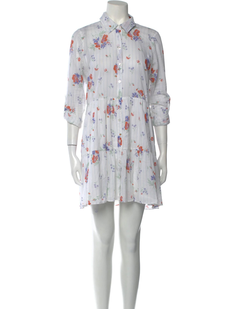 Veronica Beard Jemila Floral Cotton Long Sleeve Mini Shirt Dress Small