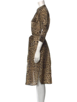 - Style: Makua Leopard Print Silk Blend Midi Shirt Dress