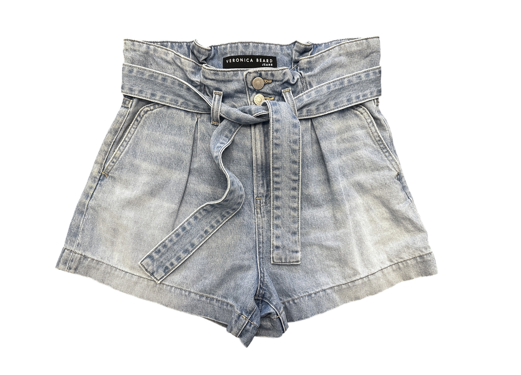 Veronica Beard Nori Extra High Rise Paper Bag Denim Shorts Size 25