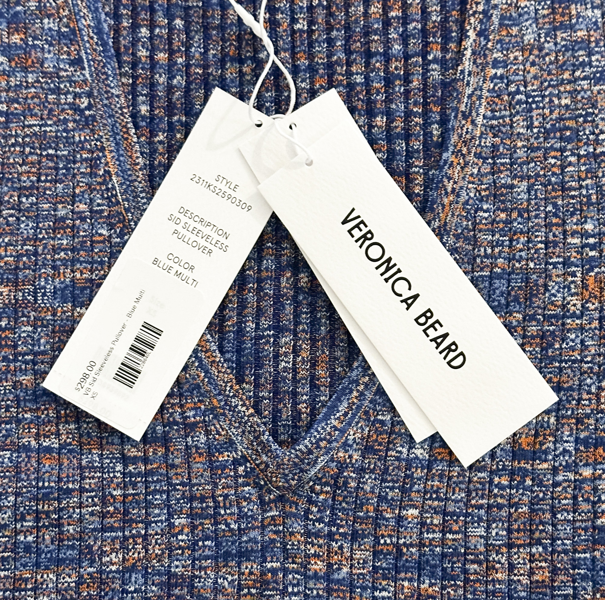 Veronica Beard NWT Sid Rib Knit V-Neck Sleeveless Top Blouse Spacedye Multi XS NEW