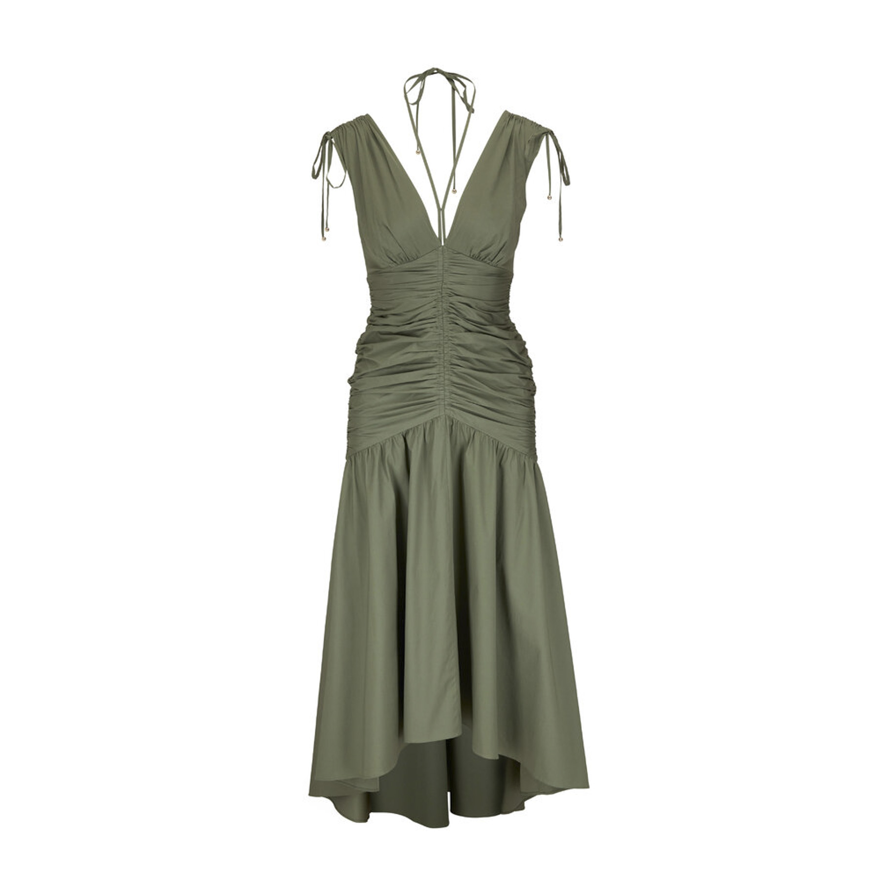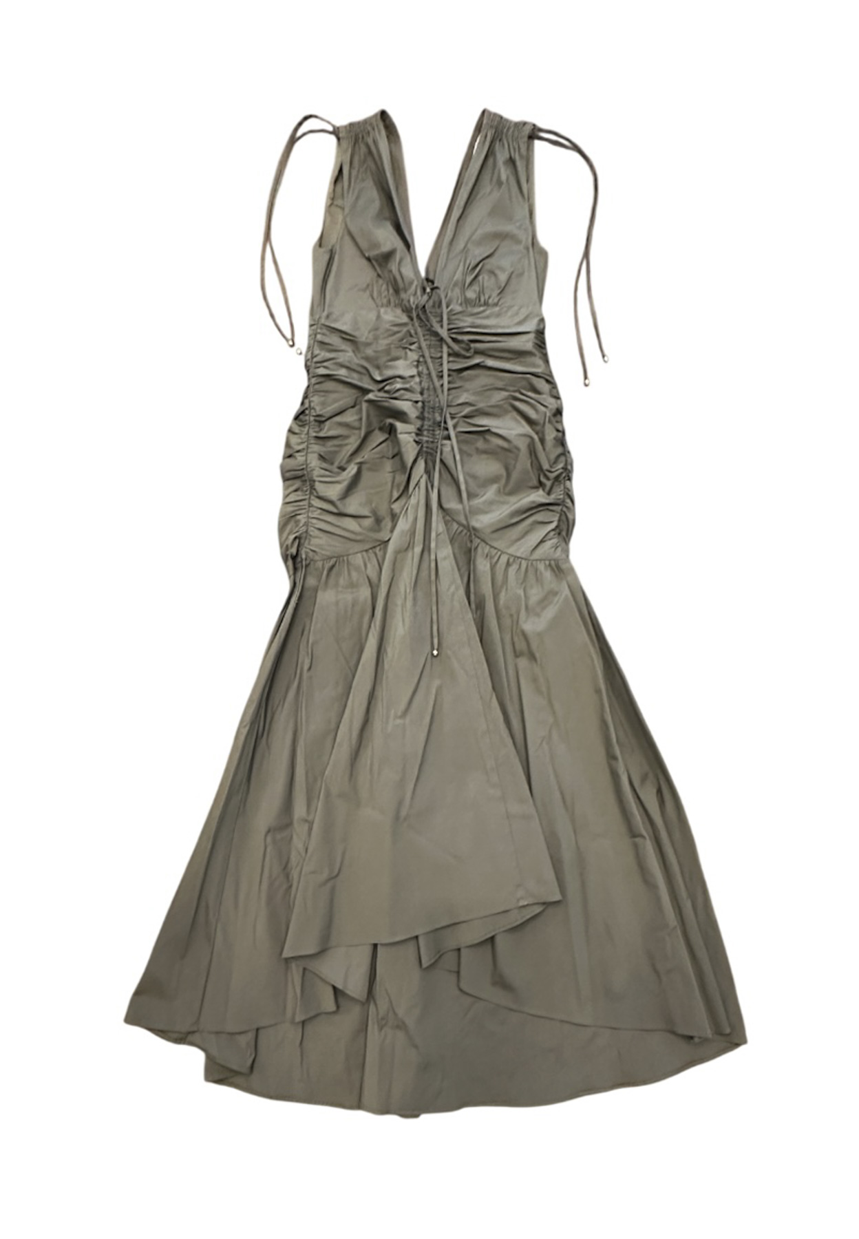 - Style: Perrin Green Cinched Ruched Sleeveless Maxi Dress