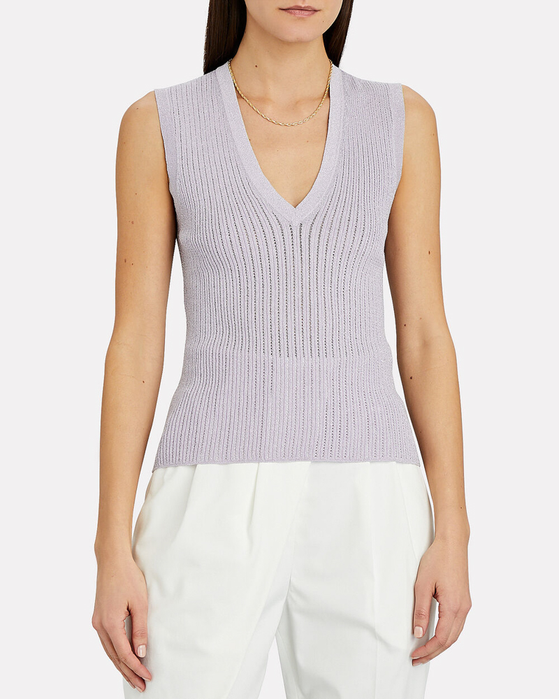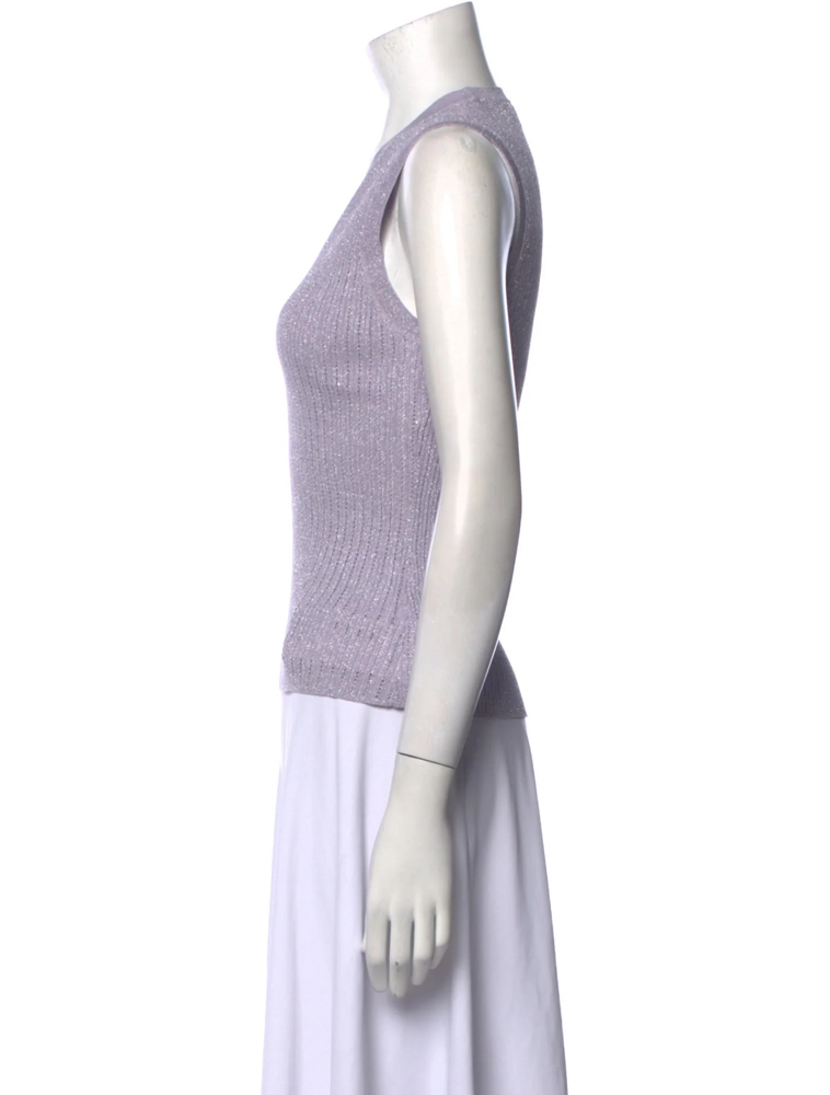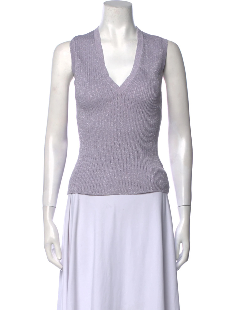 - Style: Sid Rib Knit V-Neck Sleeveless Top Blouse Metallic Purple