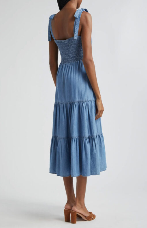 Veronica Beard Tola Blue Chambray Sleeveless Tiered Smocked Midi Dress 6