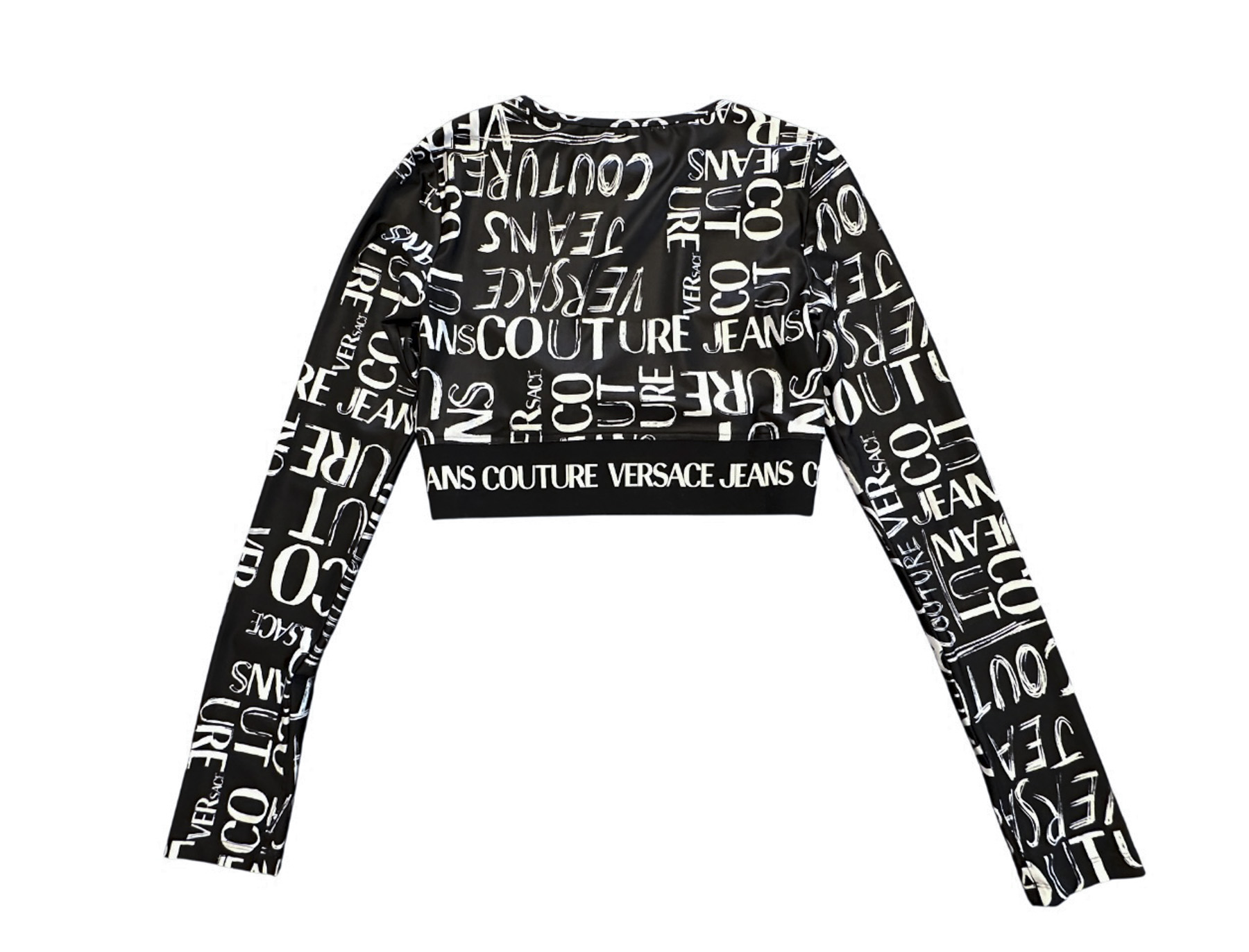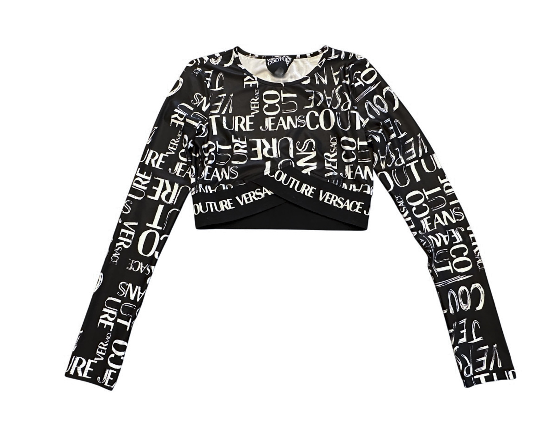 - Style: Black Sketch Print Logo Crop Top Blouse